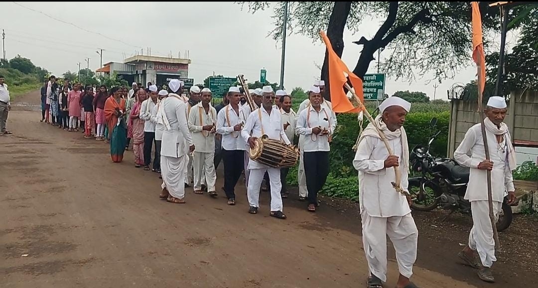 वृक्ष दिंडी काढून जनजागृती करताना ग्रामपंचायत पदाधिकारी,भजनी मंडळ,विद्यार्थी,आणि नागरिक आदी.(छाया: सोमनाथ तळेकर)