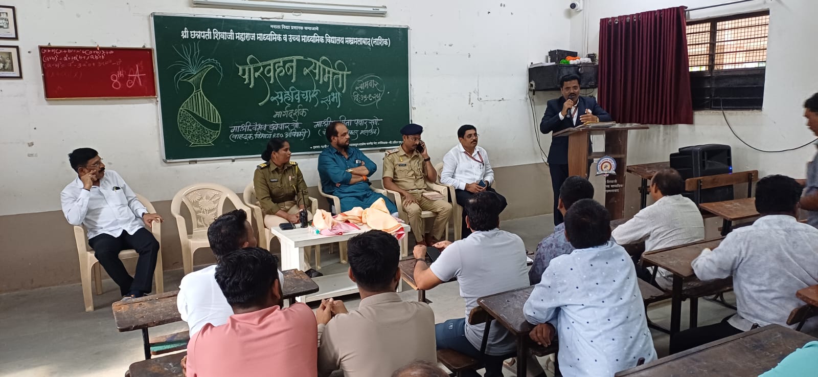 *प्राचार्य संजय डेर्ले यांनी प्रास्ताविकात या सहविचार सभेचा उद्देश विषद करतांना ते म्हणाले की मविप्र संस्थेचे नाशिक ग्रामीण चे संचालक रमेश आबा पिंगळे यांच्या निर्देशानुसार वाहनातून येतांना-जातांना विद्यार्थ्यांची सुरक्षितता अती महत्वाची आहे.त्यासाठी वाहन मालक व चालक,आर.टी.ओ. चे अधिकारी,पोलीस स्टेशनचे अधिकारी, शालेय व्यवस्थापन समिती व विद्यार्थी याचा समन्वय साधावा या उदात्त हेतूने या सहविचार सभेचे आयोजन केले गेले.* *आरटीओ अधिकारी वैभव डुबेवार यांनी वाहतुकीची नियमावली,गाडी चालकांचे-मालकांचे व प्रवासी विद्यार्थ्यांचे कर्तव्य तसेच जबाबदाऱ्या समजुन सांगीतल्या.म्हसरूळ पोलिस स्टेशनचे अधिकारी मिना पवार यांनी प्रवासात विद्यार्थी वा विद्यार्थीनींना समाज कंटकांकडून असुरक्षितता जाणवल्यास निर्भया पथकाची माहीती व कर्तव्य सांगून त्यांच्याशी कसा संपर्क साधावा यावर सविस्तर विवेचन केले.ज्येष्ठ शिक्षक पगार सर यांनी सूत्रसंचालन केले. पर्यवेक्षक संजय हांडगे यांनी आभार मानले.कार्यक्रमाचे नियोजन समिती प्रमुख अनिल पगार,समिती सदस्य सोमेश्वर मुळाने,अशोक गावले,दयाराम मुठाळ,शरद आहेर, सुनिता उशीर यांनी केले.कार्यक्रमास मखमलाबाद विद्यार्थी वाहतूक सेनेचे विभाग प्रमुख सनी मानकर,या सेनेचे मखमलाबाद शाळेचे अध्यक्ष राजाभाऊ शेकडे,उपआध्यक्ष कृष्णा म्हैसधूने,पेठरोड विभाग प्रमुख अशिष पटेल तसेच सर्व वाहन मालक व चालक शिक्षकवृंद शिक्षकेतर कर्मचारीवृंद व विद्यार्थी उपस्थित होते.