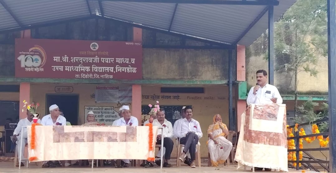 विद्यालयातील ऋतुजा वाघ,समृद्धी सोनवणे व भावना भोये या विद्यार्थिनींनी आपली मनोगते सादर केली.ग्रामीण साहित्यिक,कवी व विद्यालयाचे मुख्याध्यापक मा.देवदत्त बोरसे सर प्रमुख व्याख्याते होते.आपल्या मनोगतातून महाराष्ट्राचे थोर शिक्षण महर्षी कर्मवीर भाऊराव पाटील यांच्या जीवनचरित्रावर त्यांनी सुंदर शब्दांनी प्रकाशझोत टाकला.संघर्षाचं रणकंदन पार करून कर्मवीरांनी रयतेसाठी हर्षाचे नंदनवन कसं निर्माण केलं व समाजातील शोषित,पीडित,दलित,वंचित,आदिवासी व बहुजनांच्या मुलांसाठी रयत शिक्षण संस्थेची स्थापना करून शिक्षणाची गंगा महाराष्ट्राच्या दऱ्याखोऱ्यातल्या चंद्रमोळी झोपडीपर्यंत कशी पोहचवली हे त्यांनी आपल्या व्याख्यानातून विशद केलं. कर्मवीरांच्या जयंती सोहळ्यास विद्यालयाच्या सल्लागार समितीचे सदस्य संजय मालसाने,रमेश मालसाने,अशोक मालसाने,सुमनताई जगताप,निगडोळ ग्रा.पं.चे सरपंच मा.कृष्णा रहेरे,शशिकांत मालसाने व निगडोळ पंचक्रोशीतील शिक्षणप्रेमी ग्रामस्थ,विद्यालयाच्या विविध समित्यांचे पदाधिकारी,माजी विद्यार्थी व कृषी क्षेत्रातील मान्यवर,रयत सेवकवृंद सर्व विद्यार्थी उपस्थित होते.