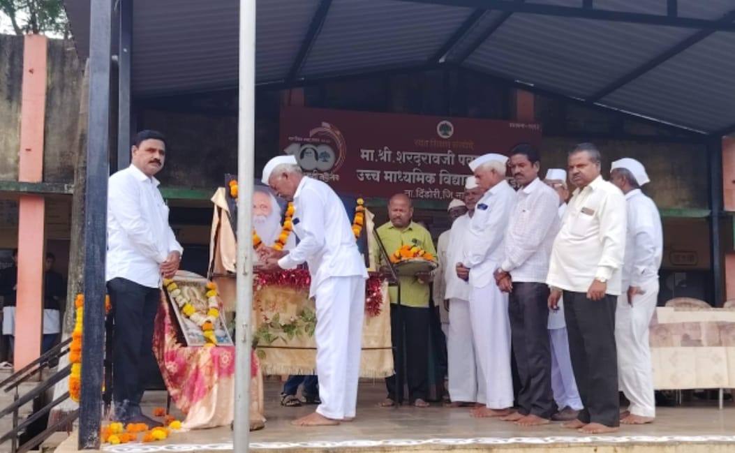निगडोळ 🙁 प्रतिनिधी ) येथील रयत शिक्षण संस्थेचे मा.शरदरावजी पवार माध्य.विद्यालय निगडोळ ता.दिंडोरी जि.नाशिक या ज्ञानसंकुलात पद्मभूषण डॉ.कर्मवीर भाऊराव पाटील उर्फ आण्णांची १३८ वी जयंती साजरी झाली.सकाळी कर्मवीरांची निगडोळ गावात सवाद्य भव्यदिव्य मिरवणूक काढण्यात आली.विद्यालयाच्या प्रांगणात कर्मवीरांची जयंती साजरी झाली.कर्मवीरांच्या व रयत माऊली लक्ष्मीबाईंच्या प्रतिमेचे पूजन व दीप प्रज्वलन विद्यालयाच्या सल्लागार समितीचे चेअरमन मा.बबनरावजी मालसाने दादा व मान्यवरांच्या हस्ते झाले.