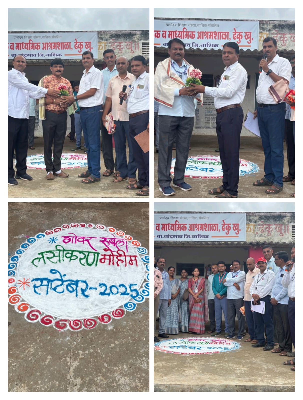 ढेकू (प्रतिनिधी )ढेकू आश्रम शाळेत गोवर व रूबेला मोहिमेअंतर्गत लसीकरण केंद्र शासनाच्या मार्गदर्शक सूचनेनुसार 15 सप्टेंबर ते 30 सप्टेंबर 2025 या कालावधी मध्ये लसीकरण मोहीम अंतर्गत सर्व आश्रम शाळेतील विद्यार्थ्यांना गोवर व रूबेला आजाराचे निर्मूलन करण्याच्या उद्देशाने आज ग्रामोदय शिक्षण संस्था नाशिक संचलित प्राथमिक व माध्यमिक आश्रम शाळा ढेकू येथे इयत्ता पहिली ते दहावीच्या सर्व विद्यार्थी व विद्यार्थिनींना प्राथमिक आरोग्य केंद्र बोलठाण यांच्याकडून मोफत लसीकरण करण्यात आले सर्वप्रथम कार्यक्रम प्रसंगी आश्रम शाळेत नांदगाव तालुक्याचे वैद्यकीय अधिकारी डॉक्टर श्री संतोष जगताप साहेब यांनी गोवर व रूबेला आजार संबंधी माहिती सांगितली