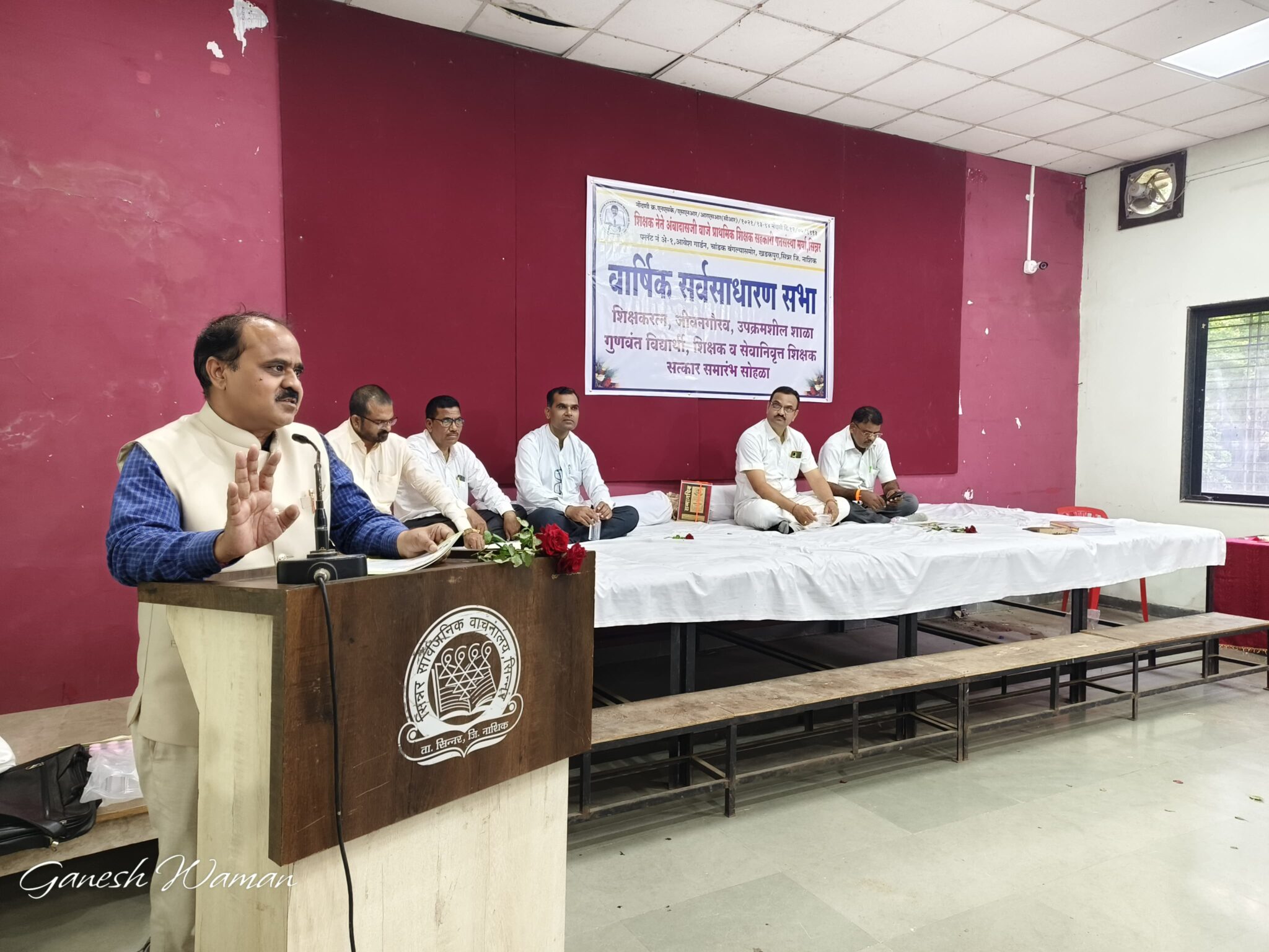 सिन्नर (प्रतिनिधी) – शिक्षक नेते अंबादासजी वाजे प्राथमिक शिक्षक पतसंस्थेची वार्षिक सभा खेळीमेळीच्या आणि उत्साहपूर्ण वातावरणात पार पडली. सभेच्या अध्यक्षस्थानी चेअरमन श्री. प्रदीप शिंदे होते.तर प्रमुख अतिथी म्हणून गट शिक्षणाधिकारी विजय बागुल उपस्थित होते शिंदे यांनी आपल्याप्रास्ताविकातून पतसंस्थेच्या कार्याविषयी सविस्तर माहिती दिली. वार्षिक अहवालाचे वाचन व्यवस्थापक श्री. दीपक खुळे यांनी केले. सभेत शेअर्स व डिव्हिडंडवरील व्याजवाटप समान ठेवण्याचा ठराव मंजूर करण्यात आला