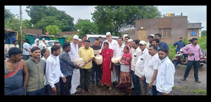 अंदरसूल येथील पूरग्रस्त भागातील नागरिकांना मदत करताना खा भगरे ॲड माणिकराव शिंदे विठ्ठलराव शेलार आदी