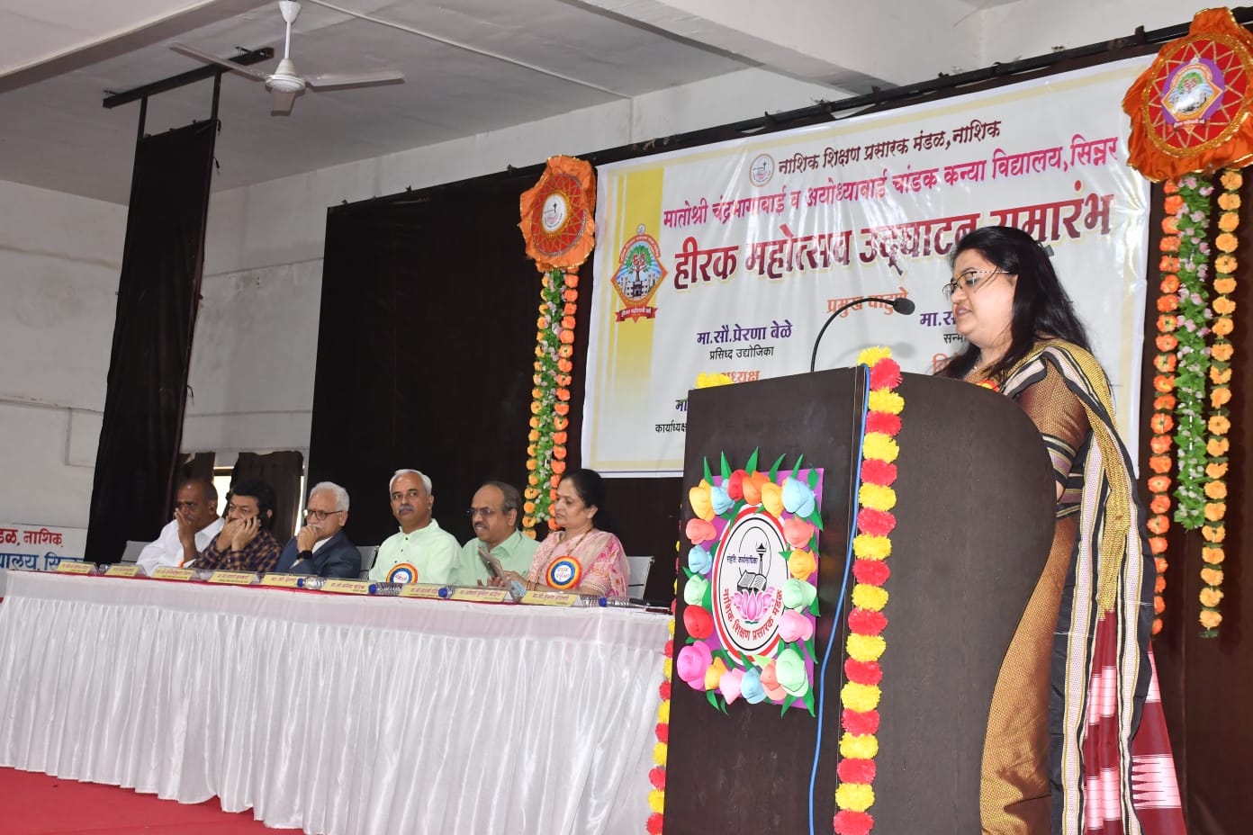 हीरक महोत्सवाच्या उद्घाटनप्रसंगी विद्यालयात एक उत्साहपूर्ण व भारावलेले वातावरण अनुभवायला मिळाले. कार्यक्रमासाठी प्रमुख पाहुण्या म्हणून सन्माननीय देणगीदार मनिषा चांडक व प्रसिद्ध उद्योजिका प्रेरणा बेळे यांची विशेष उपस्थिती लाभली. यासोबतच संस्थेचे कार्याध्यक्ष मारुती कुलकर्णी, सेक्रेटरी अश्विनीकुमार येवला,गटशिक्षणाधिकारी विजय बागुल,संकुल प्रमुख सारंग इंगळे,शालेय समिती अध्यक्ष ॲड. श्रीराम क्षत्रिय,हीरक महोत्सव समितीच्या उपाध्यक्षा माधवी पंडित, बापूसाहेब पंडित,सहखजिनदार हेमंत देशपांडे,मुख्याध्यापिका सुनिता कर्डिले आणि पर्यवेक्षिका सुवर्णा सोनवणे मंचावर उपस्थित होते.