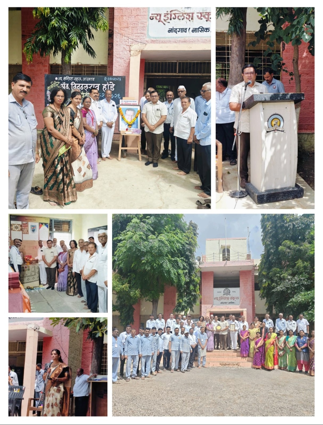.. नांदगाव (प्रतिनिधी )- मविप्र संचलित न्यू इंग्लिश स्कूल नांदगाव विद्यालयात कर्मवीर ॲड. विठ्ठलराव हांडे साहेब जयंतीनिमित्त त्यांच्या प्रतिमेचे पूजन संस्थेचे तालुका संचालक इंजि. अमित भाऊ बोरसे -पाटील व उपस्थित मान्यवरांचा हस्ते करण्यात आला. याप्रसंगी मंचावर श्री रमेश अण्णा बोरसे, विजय काकळीज,राजाराम गवांदे , शरद पगार ,शरद पाटील, राजेश पाटील ,सुनील बोरसे,दशरथ आरोटे, प्राचार्य जाधव, अविनाश सोळूंके ,प्राचार्य मढे, प्रतिभाताई खैरनार, ज्योती काळे, दीपक चव्हाण, अविनाश शेवाळे व सर्व मान्यवर उपस्थित होते. कार्यक्रमाच्या सुरुवातीला सर्व मान्यवरांना सन्मानित करण्यात आले.’खंडेल नवमी’ निमित्ताने विद्यालयातील संगीत साहित्य व पुस्तक यांचे पूजन करण्यात आले. काव्य लेखिका प्रतिभा खैरनार यांचा परिचय करून देताना विजय काकळीज म्हणाले की, आपल्या विद्यालयातील माजी विद्यार्थीनी असून,तू मृगजळ जणू, बाभूळ फुलं, पडसावल्या इ. काव्यसंग्रह प्रकाशित आहेत. प्रतिभा खैरनार यांना इजि. अमित भाऊ बोरसे पाटील यांच्या हस्ते सन्मानित करण्यात आले. प्रतिभा खैरनार यांनी आपले मनोगत व्यक्त करतात म्हणाले की, मी या विद्यालयातील माजी विद्यार्थीनी असून मला या शाळेचा ,संस्थेचा खूप अभिमान आहे, ‘बहुजन हिताय ,बहुजन सुखाय’ या ब्रीद वाक्य प्रमाणे ही शाळा ,संस्था शहरी तसेच ग्रामीण भागातील विद्यार्थ्यांना नेहमी प्रोत्साहित करत असते. याप्रसंगी त्यांनी शिक्षकांप्रती आदर असलेली कविता वाचन देखील केले. अध्यक्षीय मनोगतातून इंजि. अमित भाऊ बोरसे -पाटील यांनी सर्वप्रथम कर्मवीर ॲड विठ्ठलराव हांडे साहेब यांचा जीवन कार्याचा परिचय करून देताना एका खेडेगावात जन्मलेल्या व्यक्ती परंतु समाजाप्रती सामाजिक व शैक्षणिक आस ठेवून त्यांनी आपली कार्याची सुरुवात केली.’भात लढा’ हि त्यांचा जीवनातील महत्त्वाची घटना आहे. संस्थेचे सभापती असताना त्यांनी संस्था कशी नावलौकिक होईल, या दृष्टीने प्रयत्नशील राहिले. काव्य लेखिका प्रतिभाताई खैरनार ह्यांच्या विषयी बोलताना,ताई विद्यालयाच्या माजी विद्यार्थ्यांनी आहेत याचा मला अभिमान आहे. प्रतिभाताईंच्या कार्याची प्रेरणा सर्व विद्यार्थ्यांनी घ्यावी, असे आव्हान त्यांनी विद्यार्थ्यांना केले. ‘मुख्यमंत्री माझी शाळा, सुंदर शाळा’ या उपक्रमा अंतर्गत विद्यालयास तालुका स्तरावर व्दितीय क्रमांक प्राप्त झाल्याने त्यांनी विद्यालयातील सर्व सेवकांचे अभिनंदन केले व शुभेच्छा दिल्या. हा कार्यक्रम यशस्वी करण्याकरिता विद्यालयातील सर्व शिक्षक, शिक्षिका व शिक्षकेतर कर्मचारी यांचे मोलाचे सहकार्य लाभले. कार्यक्रमाचे सूत्रसंचालन शरद आहेर व आभार प्रदर्शन दत्तात्रय भिलोरे यांनी केल