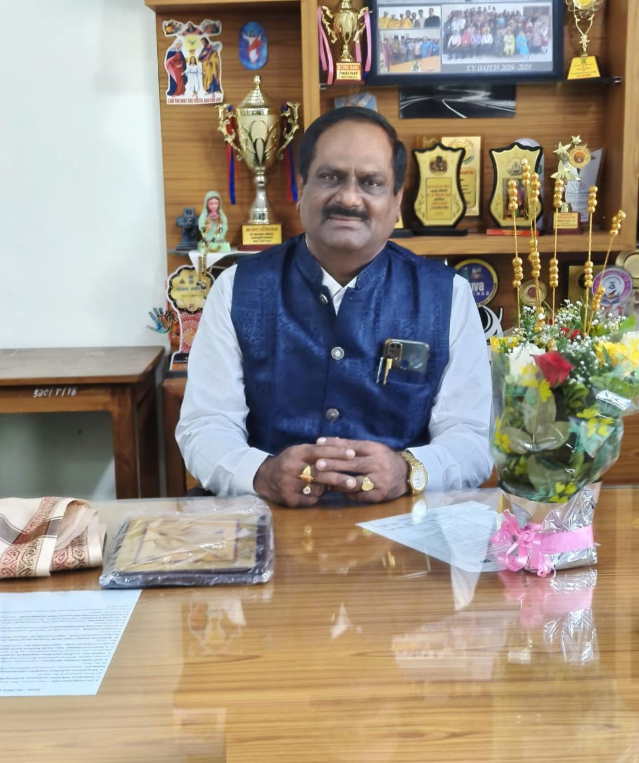 वसई (गुरुदत्त वाकदेकर) – ज्ञानदीप मंडळाच्या सेंट जोसेफ महाविद्यालयात प्रा. डॉ. घोरुडे तात्यराव नामदेवराव यांनी नवीन प्राचार्य म्हणून पदभार स्वीकारला. स्वागत सोहळ्यात मंडळाचे अध्यक्ष फ्रान्सिस तुस्कानो, सचिव अँड्र्यू लोपीस, प्रभारी प्राचार्य, तसेच शिक्षकवर्ग व शिक्षकेत्तर कर्मचारी उपस्थित होते. कार्यालय अधीक्षक विल्यम रॉड्रिग्ज ह्यांनी सर्व मान्यवरांचे स्वागत केले. प्रा. डॉ. घोरुडे यांच्या भौतिकशास्त्रातील शैक्षणिक व संशोधन कार्याचा गौरवपूर्ण परिचय देण्यात आला. त्यांनी ३० वर्षांहून अधिक काळ अध्यापन व २५ वर्षांचे संशोधन कार्य केले असून उपप्राचार्य, विभागप्रमुख व कार्यकारी प्राचार्य म्हणून दीर्घकाळ नेतृत्व निभावले आहे.त्यांच्या मार्गदर्शनाखाली ६ संशोधकांनी पीएच.डी. पूर्ण केली, ५६ संशोधन लेख, १४ ग्रंथ, ३ पेटंट्स व ६ संशोधन प्रकल्प यशस्वीरीत्या पूर्ण झाले आहेत. मुंबई विद्यापीठाच्या बोर्ड ऑफ स्टडीज इन फिजिक्स चे अध्यक्ष तसेच विविध शैक्षणिक समित्यांवर त्यांनी उल्लेखनीय कार्य केले आहे. त्यांच्या शैक्षणिक योगदानासाठी ४ पुरस्कार प्राप्त झाले असून एपीआय स्कोअर १०२०.५ त्यांच्या कार्याचा भव्य पुरावा आहे. मंडळाचे अध्यक्ष फ्रान्सिस तुस्कानो यांनी त्यांना बुके, शॉल व सन्मानचिन्ह देऊन सन्मान केला.कार्यक्रमाचे सूत्रसंचालन कार्यालय अधीक्षक विल्यम रॉड्रिग्ज यांनी केले. उपस्थित मान्यवरांनी प्राचार्य डॉ. घोरुडे यांच्या मार्गदर्शनाखाली महाविद्यालय नवी शैक्षणिक शिखरे गाठेल, असा विश्वास व्यक्त केला. कार्यक्रमाच्या शेवटी सर्वांनी एकत्रितपणे नव्या प्राचार्यांचे हार्दिक अभिनंदन करून यशस्वी कार्यकाळासाठी शुभेच्छा दिल्या.