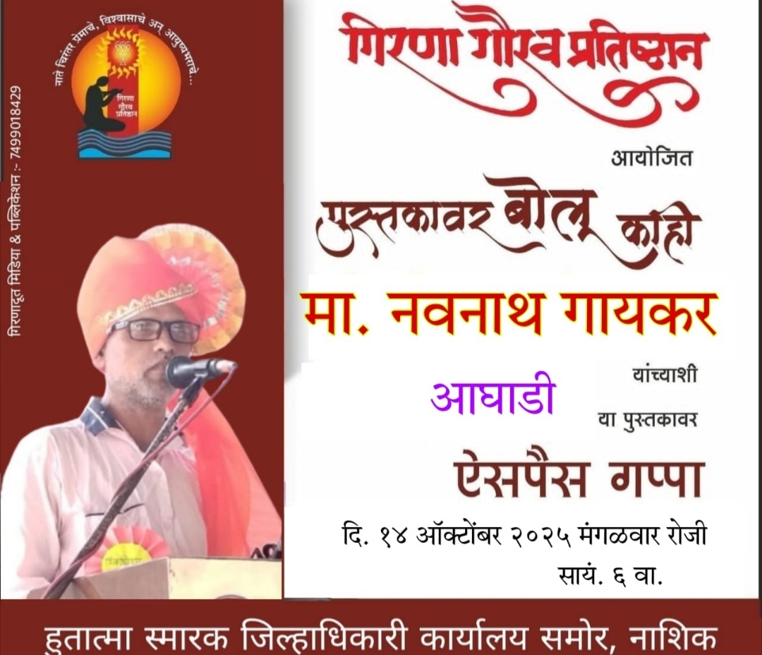 इगतपुरी ( तालुका प्रतिनिधी- नवनाथ गायकर,) महाराष्ट्रातील नामवंत कथालेखक, सुप्रसिद्ध व्याख्याते तथा पत्रकारीता,धार्मिक व सामाजिक क्षेत्रातही अग्रेसर असणारे मा.श्री.नवनाथ अर्जुन पाटिल गायकर यांचेशी येत्या मंगळवारी दि.१४ ऑक्टो.रोजी नाशिककर साहित्य रसिक ‘पुस्तकावर बोलु काही….’ या गिरणा गौरव प्रतिष्ठानचे वतीने आयोजीत उपक्रमातंर्गत ऐसपैस गप्पा व संवाद साधणार असल्याची माहिती प्रतिष्ठाने अध्यक्ष मा.सुरेश पवार यांनी दिली आहे. गिरणा गौरव प्रतिष्ठान चे वतीने नाशिक मध्ये सातत्याने विविध उपक्रम राबवले जात आहे.या माध्यमातुन मा.पवार यांनी शेकडो साहित्यिकानां हक्काचे व्यासपीठ दिले असुन, प्रोत्साहन देत त्यांना प्रकाशात आणले आहे. गायकर हे महाराष्ट्रातील आघाडीचे कथालेखक असुन कथाकथन ही प्रभावी पद्धतीने करतात.त्यांना राज्यस्तरावर विविध सन्मान व मानाचे पुरस्कार प्राप्त झाले आहेत. ग्रामीण व विनोदी कथा लेखन शैलीत त्यांचा दांडगा हातखंडा असुन ते वाचकप्रिय लेखक आहेत. मंगळवार दि.१४ ऑक्टो.रोजी संध्या.६ वाजता नाशिक येथील जिल्हा न्यायालयासमोरील हुतात्मा स्मारकात या कार्यक्रमाचे आयोजन करण्यात आले आहे. यावेळी गायकर हे आपल्या ‘आघाडी’ या कथासंग्रहातील विविध कथा,त्यातील मुल्य, मानवी भाव भावनाचां कल्लोळ, वैचारीक द्वंद आदी भावनाचां वेध घेणार आहेत. या कार्यक्रमास नाशिक शहर व जिल्हयातील साहित्यिक रसिकानीं भरभरुन प्रतिसाद दयावा व मोठया संख्येने उपस्थित रहावे असे आवाहन गिरणा गौरव प्रतिष्ठानचे अध्यक्ष सुरेश पवार यांचेसह प्रतिष्ठानचे पदाधिकारी यांनी केले आहे.