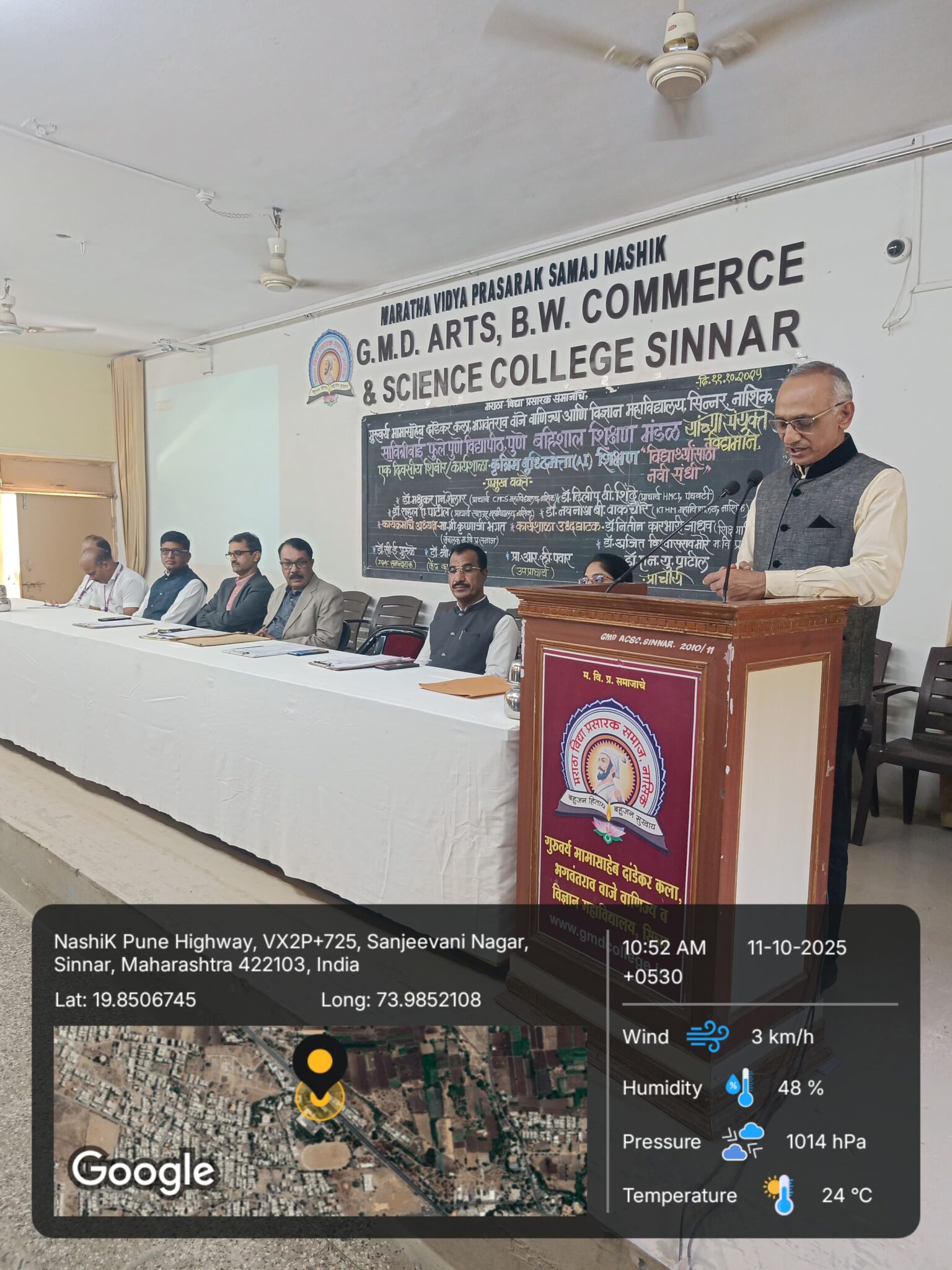 सिन्नर. ( प्रतिनिधी), दि. ११ ऑक्टोबर :सावित्रीबाई फुले पुणे विद्यापीठ, पुणे, बहि:शाल शिक्षण मंडळ आणि मराठा विद्या प्रसारक समाजाचे गुरुवर्य मामासाहेब दांडेकर कला, भगवंतराव वाजे वाणिज्य व विज्ञान महाविद्यालय, सिन्नर यांच्या संयुक्त विद्यमाने “कृत्रिम बुद्धिमत्ता शिक्षण : विद्यार्थ्यांसाठी नवी संधी” या विषयावर एकदिवसीय कार्यशाळा संपन्न झाली. कार्यशाळेच्या अध्यक्षस्थानी सिन्नर महाविद्यालयाचे प्राचार्य डॉ. नरेंद्र पाटील पाटील होते.
