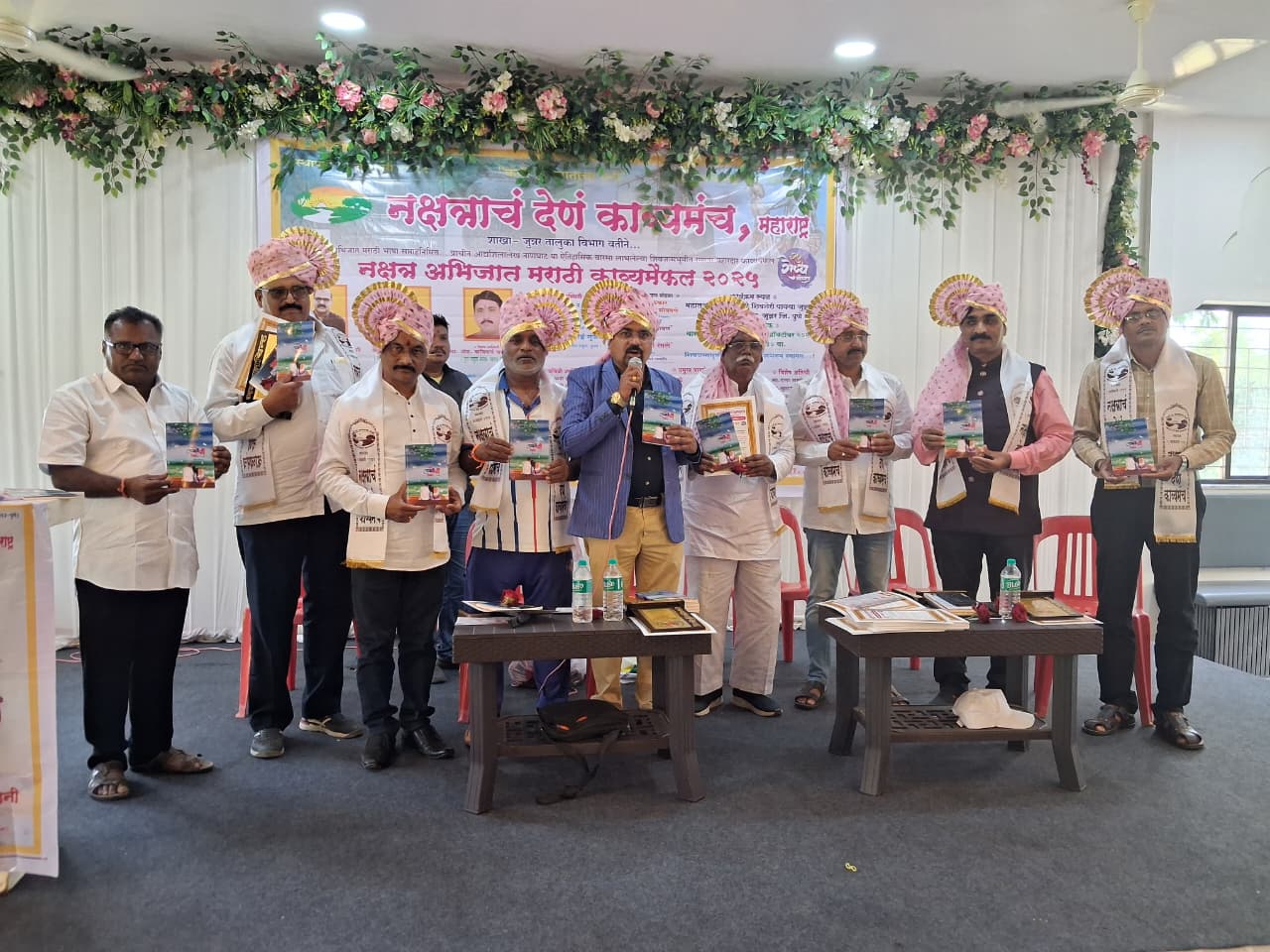 यावेळी अध्यक्ष भाषणात कवी उत्तम सदाकाळ म्हणाले की, ” वाचनाबरोबर चिंतन आवश्यक आहे. आपल्या बोली भाषेचा वापर लेखनामध्ये झाला पाहिजे.मराठी भाषेला अभिजात दर्जा ज्यासंदर्भामुळे मिळाला. तो आद्य शिलालेख नाणेघाट होय. या माय मराठीचा जागर त्याच्या सानिध्यात होत आहे. ही अभिमानाची गोष्ट आहे. येणाऱ्या पिढ्यांना लिहिते करण्याची गरज आहे.कवितेचा ध्यास घेतल्याशिवाय सुंदर निर्मिती होऊ शकत नाही. ” यावेळी कवी वादळकार यांच्या “वादळाचं घोगावणं “या चारोळीसंग्रहाचे सुद्धा प्रकाशन करण्यात आलले.तसेच कवी अशोक उघडे यांच्या “मन प्रेमरंगी रंगले “या काव्यसंग्रहाचे प्रकाशन मान्यवरांच्या हस्ते करण्यात आले. यावेळी “नक्षत्र अभिजात मराठी काव्यमैफल” मध्ये रंग भरण्याचे काम बालकवी वेदश्री डोके, नित्यश्री घोडे, रियाज दुधाळ,श्रुती डोके, विराज वाणी, तनुजा डोके तसेच मान्यवर कवी मध्ये सौ सरिता कलढोणे, सौ जयश्री बाबळे, डॉ. मो. शकील जाफरी श्रीमती नंदा मंडलिक, सौ रेशमा पानसरे, नवनाथ सरोदे, रणजीत पवार,प्रताप गुंजाळ इत्यादी अनेकांनी आपल्या रचना सादर केल्या.