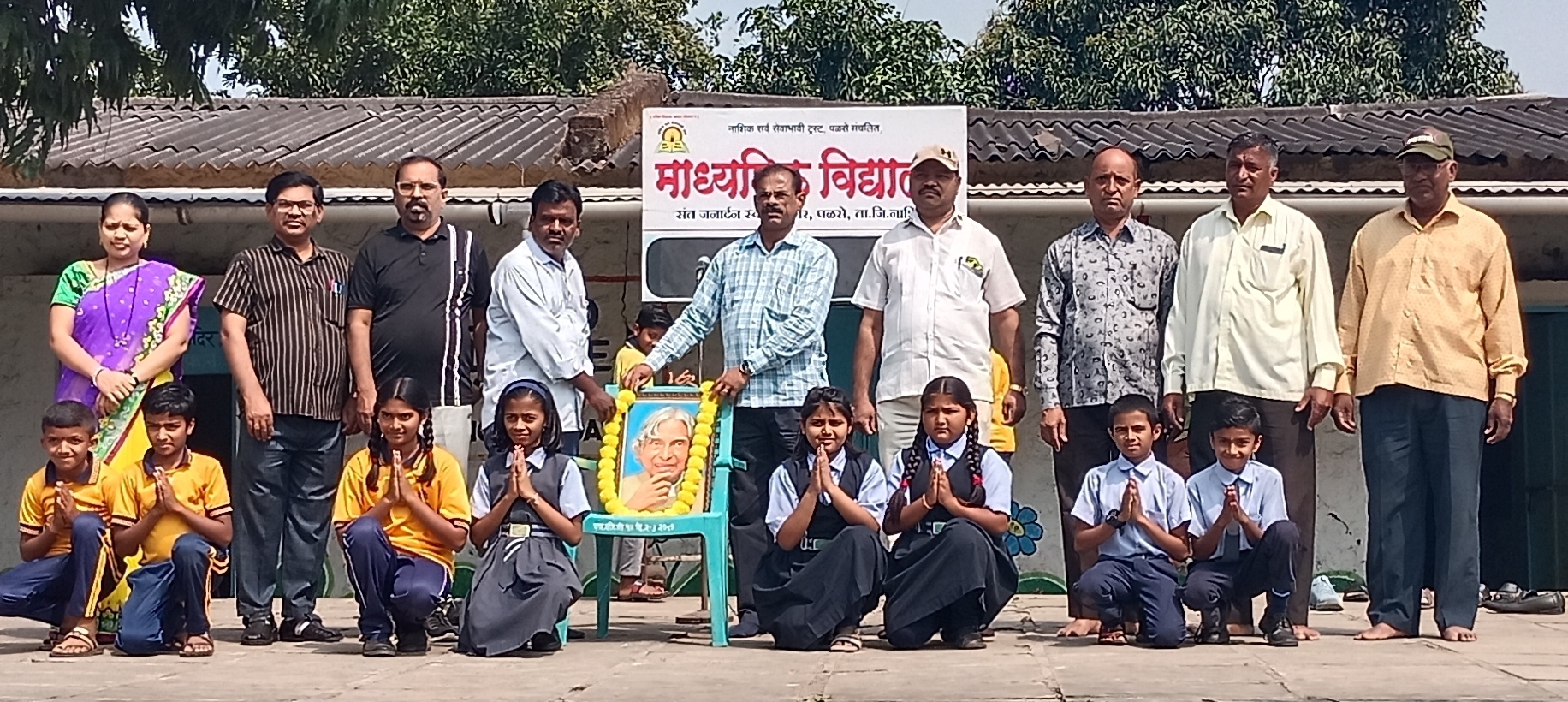 नाशिकरोड ( प्रतिनिधी):- पळसे येथील नाशिक सहकारी साखर कारखाना कार्यस्थळावरील माध्यमिक विद्यालयात माजी राष्ट्रपती आणि मिसाईल मॅन डॉ.ए.पी.जे.अब्दुल कलाम यांचा जन्मदिन वाचन प्रेरणा दिन संपन्न झाला. विद्यालयाचे मुख्याध्यापक अरुण पगार यांच्या मार्गदर्शनाखाली संपन्न झालेल्या कार्यक्रमात प्रारंभी विद्यार्थ्यांसह शिक्षक-कर्मचारी यांच्या उपस्थितीत प्रतिमापूजन करण्यात आले. वाचन प्रेरणा दिनानिमित्त शिक्षक रवींद्र मालुंजकर यांनी डॉ.कलाम यांचे कार्य आणि वाचनाचे महत्त्व याबद्दल विचार मांडताना साधेपणा आणि वैज्ञानिक दृष्टिकोन जपणारे डॉ.कलाम यांचे कार्य अनन्यसाधारण आहे. तसेच पुस्तके आपले जवळचे मित्र आहेत. त्यांच्या सानिध्यात आपण सदैव राहिलो तर जीवन नक्कीच यशस्वी होते, असे सांगितले.फोटोओळी:- वाचन प्रेरणादिनी डॉ.ए.पी.जे.अब्दुल कलाम यांच्या प्रतिमेचे पूजन करताना मुख्याध्यापक अरुण पगार, विद्यार्थी, शिक्षक आणि कर्मचारी.