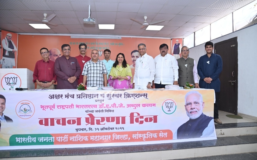 नाशिक ( प्रतिनिधी ) वाचन संस्कृती जोपासणे आणि वृद्धिंगत करणे ही काळाची गरज…असे उद्गार आहेत डॉक्टर योगेश जोशी यांचे. डॉ. ऐ पी जे अब्दुल कलाम यांच्या जयंती निमित्त अखंड वाचन यज्ञ उपक्रम अंतर्गत आयोजित करण्यात आलेल्या वाचन प्रेरणा दिना मध्ये डॉ. योगेश जोशी बोलत होते. विठ्ठल कामत, मकरंद अनासपुरे संकर्शन कऱ्हाडे यांनी विविध पुस्तके विकत घेऊन वाचन चळवळ रुजवली आहे. अखंड पन्नास तास वाचन उपक्रम मध्ये 1500 वाचकांनी भाग घेऊन घेतलेल्या उपक्रम मुळे वाचन उपक्रम ची गरज कशी आहे ते त्यांनी प्रतिपादन केलें.सुनीता गायधनी आणि श्री संजय जोशी यांची मुख्य व्याख्याने झाली. सुरुवातीला दीप प्रज्वलन व प्रतिमा पूजन झाल्यावर संयोजक, भारतीय जनता पार्टी सांस्कृतिक सेल चे संयोजक प्रा. अविनाश बल्लाळ यांनी प्रास्ताविक केलें. कु. जुई पाटील हिने स्वागत गीत सादर केले.त्या नंतर सुनीता गायधनी, ॲड. शाम बडोदे, श्री संजय जोशी, भारतीय जनता पार्टी चे उपाध्यक्ष अजिंक्य साने, श्री देवानंद बीरारी, पदाधिकारी प्रकाश चकोर, माणिकराव शिंदे, पंचवटी मंडल अध्यक्ष श्री कुलकर्णी उपस्थित होते.प्रदेश प्रवक्ते श्री लक्ष्मण सावजी, भाजपा नाशिक महानगर अध्यक्ष श्री सुनील केदार यांनी वाचन दिना वर मनोगत व्यक्त केलें. लेखक सुहास टिपरे, सुबोध धर्माधिकारी, गोविंद केंगे, श्री रानमाळे, सौं रानमाळे सौ श्रद्धा भुरे,श्री राज महेश हिरे, श्री उपासनी, मानस जोशी इत्यादी अनेक वक्त्यांनी मनोगत व्यक्त केलें. सुस्वर क्रियेशन च्या सौ सुकन्या जोशी व सह संयोजक सुहास टिपरे यांनी कार्यक्रम चे सूत्रसंचालन केलें. शार्दुल बल्लाळ यांनी आभार मानले.या कार्यक्रमास आशा बल्लाळ, सौ नीता व श्री विवेक बोबडे, श्री सुधाकर गायधनी, रमेश मोडक, प्रसाद दहीवेलकर, सिद्धेश सोमवंशी, आनंद गोरे आदी उपस्थित होते. कार्यक्रम अत्यंत यशस्वी रित्या पार पडल्या बद्दल संयोजक बल्लाळ सर व सह संयोजक सुहास टिपरे, शार्दुल बल्लाळ व श्री दिलीप बल्लाळ यांनी सांस्कृतिक सेल भाजप नाशिक च्या वतीने सर्वांचे आभार मानले.