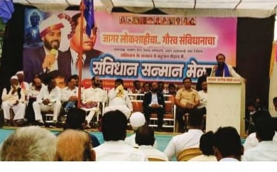 नांदगाव (प्रतिनिधी):“डॉ. बाबासाहेब आंबेडकरांनी आपलं संपूर्ण आयुष्य समाजासाठी अर्पण केलं. त्यांनी माणूस म्हणून जगण्याचा अधिकार दिला,” असे प्रतिपादन डॉ. बाबासाहेब आंबेडकर यांचे पणतू डॉ. प्रा. अक्षयराज आंबेडकर यांनी केले.धम्मचक्र प्रवर्तन दिन तसेच संविधान अमृत महोत्सवी वर्षानिमित्त संविधान सन्मान कार्यक्रमात ते नांदगाव येथे बोलत होते.प्रा. आंबेडकर म्हणाले की, “भारतीय संविधानाचे चार मजबूत स्तंभ आहेत. बाबासाहेबांनी संविधानाच्या माध्यमातून समाजाला आपले हक्क सुरक्षित करून दिले. आज लोकशाही टिकून आहे ती बाबासाहेबांच्या दूरदृष्टीमुळे.”या कार्यक्रमाच्या व्यासपीठावर राजेश कवडे, अरुण पाटील, प्रशांत दिवे, अमित पाटील, दर्शन आहेर, दत्तराज छाजेड, देविदास मोरे, राजाभाऊ पवार, वाल्मीक जगताप, सुरज मल संत आदी मान्यवर उपस्थित होते.कार्यक्रमात नाशिकचे माजी महापौर अशोक दिवे आणि दत्तराज छाजेड यांनीही मनोगत व्यक्त केले.कार्यक्रमाचे सूत्रसंचालन आनंद पवार यांनी केले, तर कार्यक्रमाचे आयोजन भीमशक्तीचे जिल्हाध्यक्ष मनोज चोपडे यांनी केले होते.कार्यक्रमाच्या यशस्वीतेसाठी रोहित जाधव, दीपक अंभोरे, मोहित भोसले, मोहसीन बेग, भूषण मराठे, पंकज जगताप, सागर अडकमोल आदींनी विशेष परिश्रम घेतले.