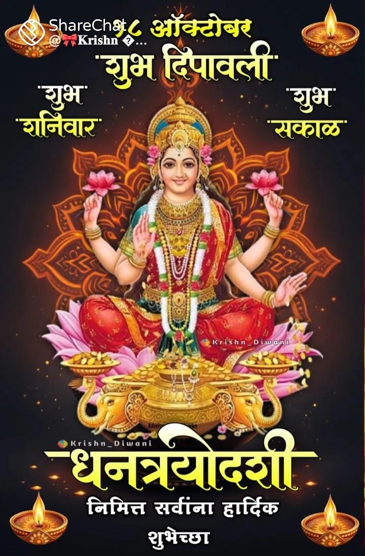 ★ धनत्रयोदशी पहिला दिवा लागतो दारी, दिव्यांनी रात्र उजळते सारी, फराळाची तर मजाच न्यारी, चला साजरी करूया दिवाळी