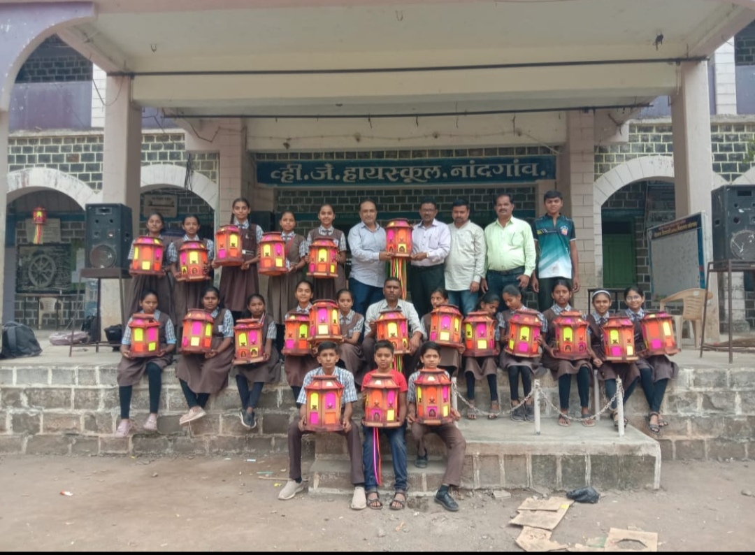 .कलाशिक्षक विजय चव्हाण यांनी विद्यार्थांना पर्यावरण पूरक आकाशकंदील तयार करण्याची संकल्पना विद्यार्थांकडून साकार करून घेतली त्यांनी या दोन दिवसात घरातील टाकाऊ कागदी पुठ्ठा व विविध पेपरचा उपयोग करून त्या पेपरची कटिंग,पेपरवर डिझाईन काढून चिटकविणे , स्प्रे च्या सहाय्याने रंगकाम करणे असे बारीकसारीक गोष्टींचे मार्गदर्शन करून आकाशकंदील तयार करण्याचे प्रशिक्षण देण्यात आले .यात विद्यार्थांनी या दोन दिवसाच्या कार्यशाळेत टप्प्या टप्प्या सर्व कलाकुसर आत्मसात करून सुंदर असे आकाशकंदील तयार केले.विद्यार्थांनी तयार केलेले आकाशकंदील स्वता विद्यार्थी आप-आपल्या घरी लावणार आहेत. कार्यशाळेसाठी नियोजन संदर्भात मुख्याध्यापक लक्ष्मीकांत ठाकरे शालेय समिती अध्यक्ष संजीव धामणे ,उपमुख्याध्यापक जोगेशवर नांदूरकर ,गुलाब पाटील,प्रवीण अहिरे,मंगेश सरोदे,विलास काकळीज याचे मार्गदर्शन लाभले.