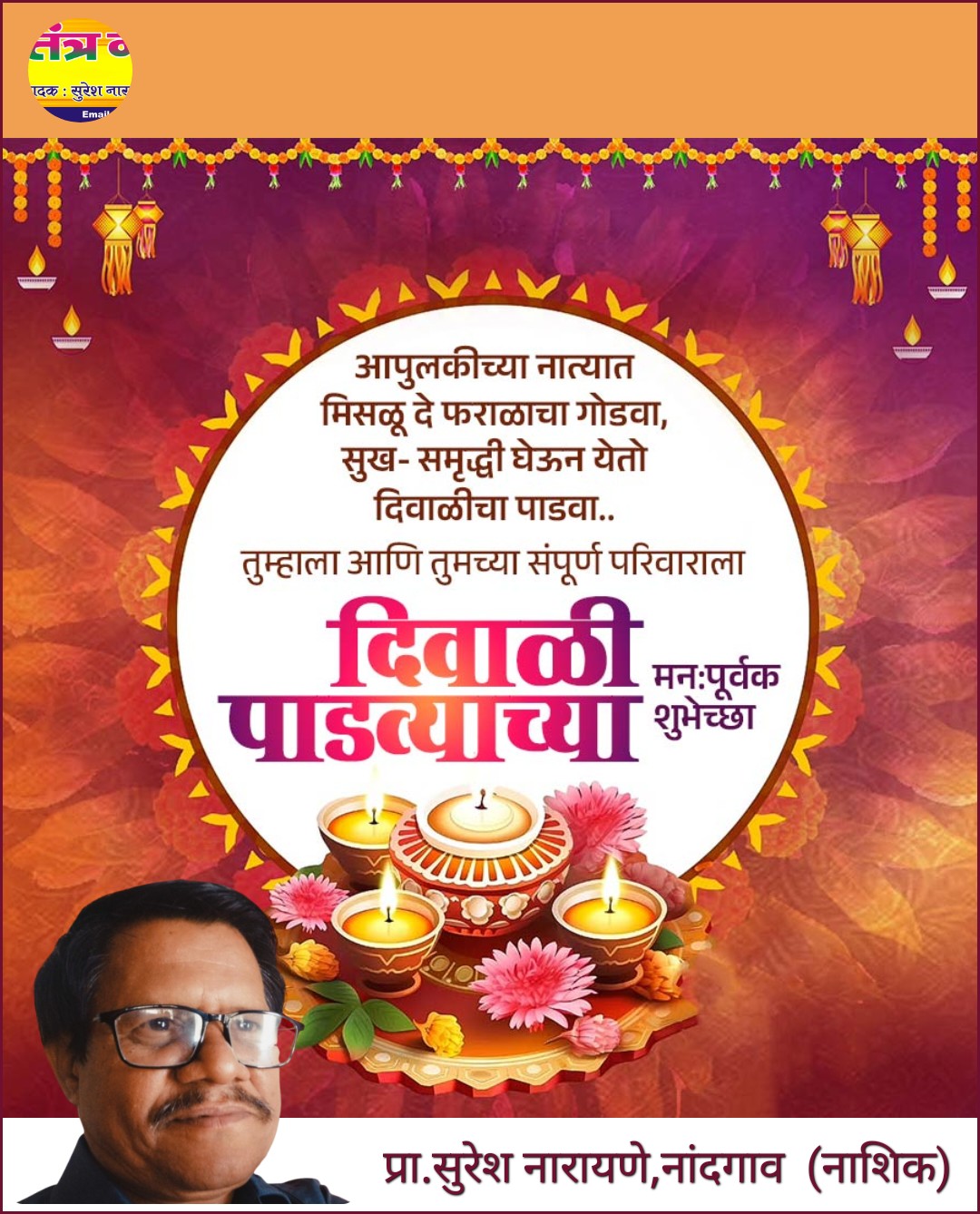 ★ दिवाळीचा सण आला, सर्वानाच पाहिजे केला. परि पाहावा कोण राहिला भुकेला घरी त्यास आमंत्रित करावे गोडधोड भोजन द्यावे, परस्परांनी मिळून चालवावे वैभव सर्वांचे – राष्ट्रसंत तुकडोजी महाराज.