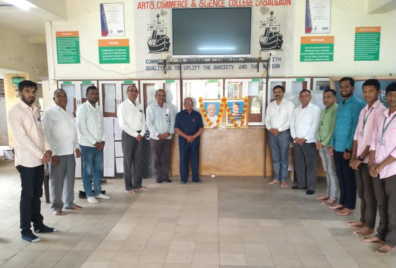 संस्थेचे जनरल सेक्रेटरी श्री.गोविंदराव होळकर यांनी सरदार वल्लभभाई पटेल व इंदिरा गांधी यांच्या प्रतिमेस पुष्पहार अर्पण करून अभिवादन केले. यावेळी प्राचार्य डॉ.आदिनाथ मोरे, उपप्राचार्य डॉ.सोमनाथ आरोटे, कार्यालय अधीक्षक श्री.रविंद्र होळकर, रा.से.यो. कार्यक्रम अधिकारी प्रा.सुनिल गायकर यांच्यासह कार्यालयीन कर्मचारी व रा.से.यो. स्वयंसेवक उपस्थित होते. यावेळी उपस्थित सर्वांनी सरदार वल्लभभाई पटेल व इंदिरा गांधी यांच्या प्रतिमेस पुष्प अर्पण करून अभिवादन केले.