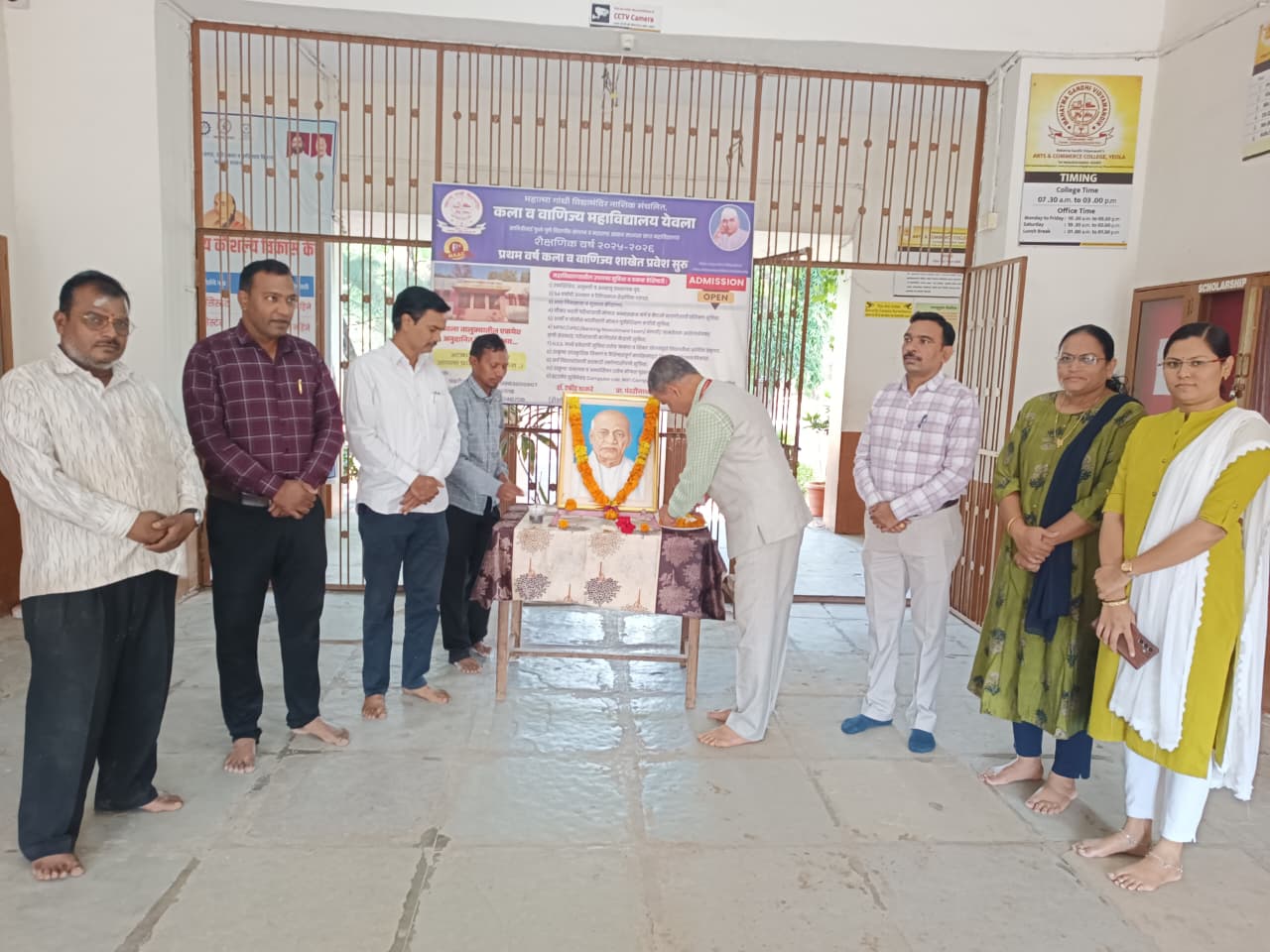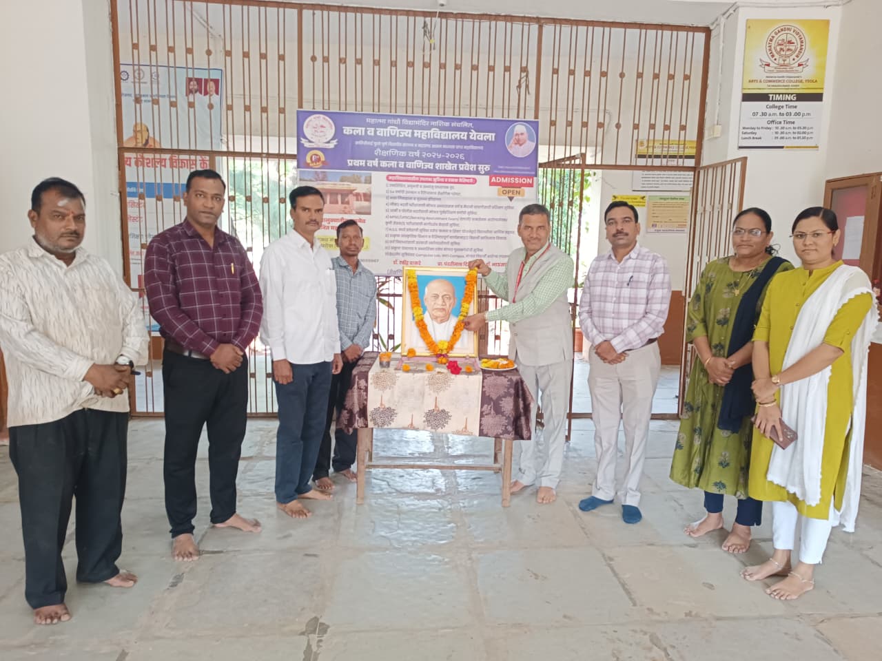 येवला,( प्रतिनिधी )ता. ३१ ऑक्टोबर, २०२५ येथील महात्मा गांधी विद्यामंदिर संचलित कला व वाणिज्य महाविद्यालयात सरदार वल्लभभाई पटेल जयंती, राष्ट्रीय एकता दिनानिमित्त आयोजित सरदार पटेलांच्या प्रतिमापूजनाचा कार्यक्रम घेण्यात आला यावेळी बोलताना प्राचार्य डॉ. भाऊसाहेब गमे यांनी लोहपुरूष सरदार पटेलांच्या जीवनकार्यावर प्रकाश टाकला. स्वतंत्र भारतात संस्थानांचे विलिनीकरण व राष्ट्रीय एकात्मता यात सरदार पटेलांचे योगदान मोठे असल्याचे ते म्हणाले. यावेळी परीक्षा विभागप्रमुख डाॅ. धनराज धनगर, कार्यालयीन अधिक्षक भालचंद्र पेंढारकर, कनिष्ठ महाविद्यालयाच्या प्रा. सुरेखा राजवळ, प्रा. धनंजय पेहेरकर, डाॅ. स्वाती सोनवणे, श्री प्रल्हाद जाधव, सोमनाथ कुवर, मनोज परदेशी आदि उपस्थित होते.