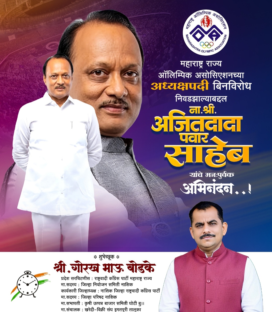राज्याचे लोकप्रिय उप मुख्यमंत्री ना.अजित (दादा) पवार यांची राज्याच्या ऑलिंपिक संघटनेच्या अध्यक्ष पदावर बिनविरोध निवड झाली आहे.