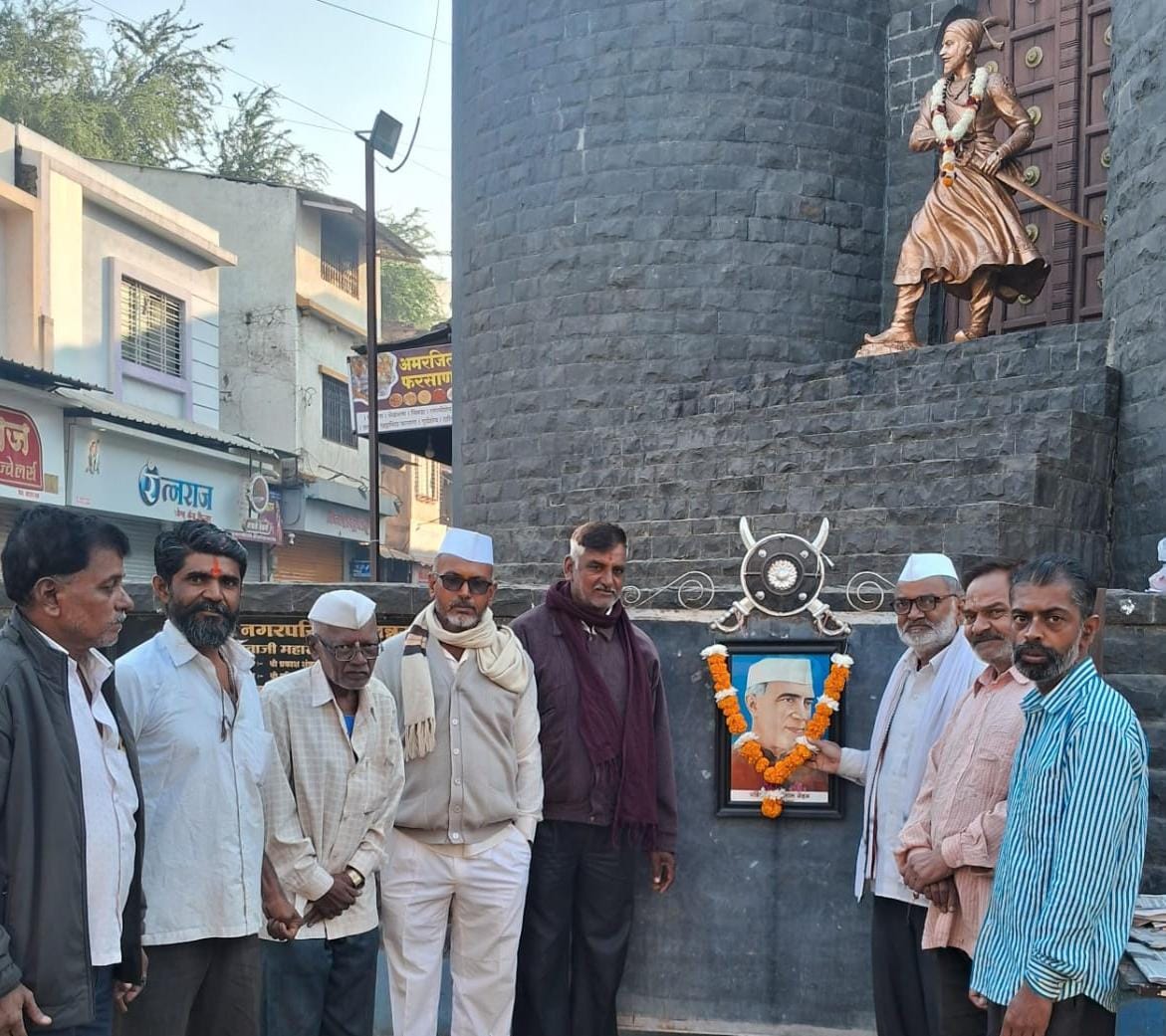 या कार्यक्रमाचे अध्यक्ष महामित्र दत्ता वायचळे म्हणाले की पंडित जवाहरलाल नेहरू यांनी डाॅ.बाबासाहेब आंबेडकरनी लिहिल्या भारतीय संविधान भारताची नवीन राज्यघटना, जी २६ जानेवारी १९५० प्रजासत्ताक दिन रोजी लागू केली. या घटनेने भारताला सार्वभौम लोकशाही प्रजासत्ताक बनवले. नवीन प्रजासत्ताक हे “राज्यांचे संघराज्य” म्हणून घोषित करण्यात आले पंडित जवाहरलाल नेहरू यांनी जनतेसाठी आर्थिक विकास साधण्यासाठी आणि देशाच्या प्रगतीसाठी अनेक योजना सुरू केल्या, ज्यामध्ये योजना आयोग स्थापन करणे आणि पंचवार्षिक योजना आणणे हे महत्त्वाचे होते. या योजनांचा उद्देश गरीबी कमी करणे, समानता आणणे आणि सर्वांना शिक्षण व रोजगार उपलब्ध करणे हा होता. त्यांनी कृषी, उद्योग, विज्ञान आणि तंत्रज्ञानाच्या विकासाला चालना दिली.पंडित जवाहरलाल नेहरू यांनी कामगारांसाठी कर्मचारी राज्य विमा (ESI) योजना सुरू केली, जी कामगारांना आजारपण, अपंगत्व किंवा मृत्यू झाल्यास सामाजिक सुरक्षा प्रदान करते. या योजनेत कामगारांना आणि त्यांच्या कुटुंबियांना वैद्यकीय सेवा आणि कायमस्वरूपी किंवा तात्पुरते अपंगत्व आणि रोजगारादरम्यान मृत्यू झाल्यास त्यांच्या कुटुंबांना वैद्यकीय सेवा.नोकरीत असताना दुखापत किंवा मृत्यू झाल्यास रोख लाभ.व्यावसायिक धोक्यांमुळे मृत्यू झाल्यास कुटुंबाला पेन्शन सध्याच्या पेन्शन योजना प्रधानमंत्री श्रम योगी मानधन योजना: ही असंघटित कामगारांसाठी एक पेन्शन योजना आहे. यात ६० वर्ष पूर्ण झाल्यावर राष्ट्रीय पेन्शन योजना निवृत्तीनंतर आर्थिक तरतुदीसाठी ही भारत सरकारने सुरू केलेली योजना आहे.कर्मचारी भविष्य निर्वाह निधी याअंतर्गत कर्मचाऱ्यांच्या निवृत्तीवेतनासाठी योजना सुरू केल्या त्यामुळे, कामगारांसाठी असलेल्या पेन्शन आणि सामाजिक सुरक्षा योजना पंडित नेहरूंच्या काळात सुरू झालेल्या अशा महान प्रधानमंत्री पंडित जवाहरलाल नेहरू यांना विनम्र अभिवादन