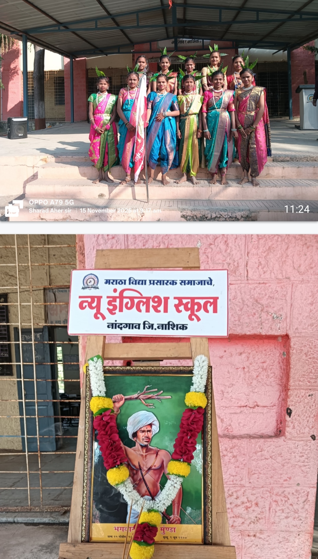 नांदगाव – मराठा विद्या प्रसारक समाज संस्थेच्या न्यू इंग्लिश स्कूल नांदगाव विद्यालयात भगवान बिरसा मुंडा यांच्या जयंती निमित्त ‘राष्ट्रीय जनजाती गौरव दिन’ उत्साहात साजरा करण्यात आला. याप्रसंगी कार्यक्रमाचे नियोजित अध्यक्ष उपमुख्याध्यापक दिपक चव्हाण, जेष्ठ शिक्षक अशोक मार्कंड व उपस्थितांच्या हस्ते भगवान बिरसा मुंडा यांच्या प्रतिमेचे पूजन करण्यात आले.