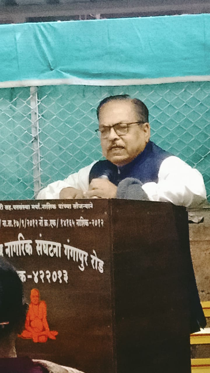 जीवनात आपण भोगलेला त्रास समाजात वावरताना इतरांना होऊ नये यासाठी कार्यरत राहावे असा विचार मांडला.सुरूवातीला जेष्ठ नागरिकांचा वाढदिवसाच्या निमित्ताने शाल आणि गुलाब देऊन मान्यवरांच्या हस्ते सत्कार करण्यात आले.कार्यक्रमाचे प्रास्ताविक सेक्रेटरी श्री.कुलकर्णी यांनी केले.अध्यक्ष श्री.सावंतसर यांनी श्री वाळू आहेर यांचा परिचय करून दिला आणि शाल देऊन सत्कार केला