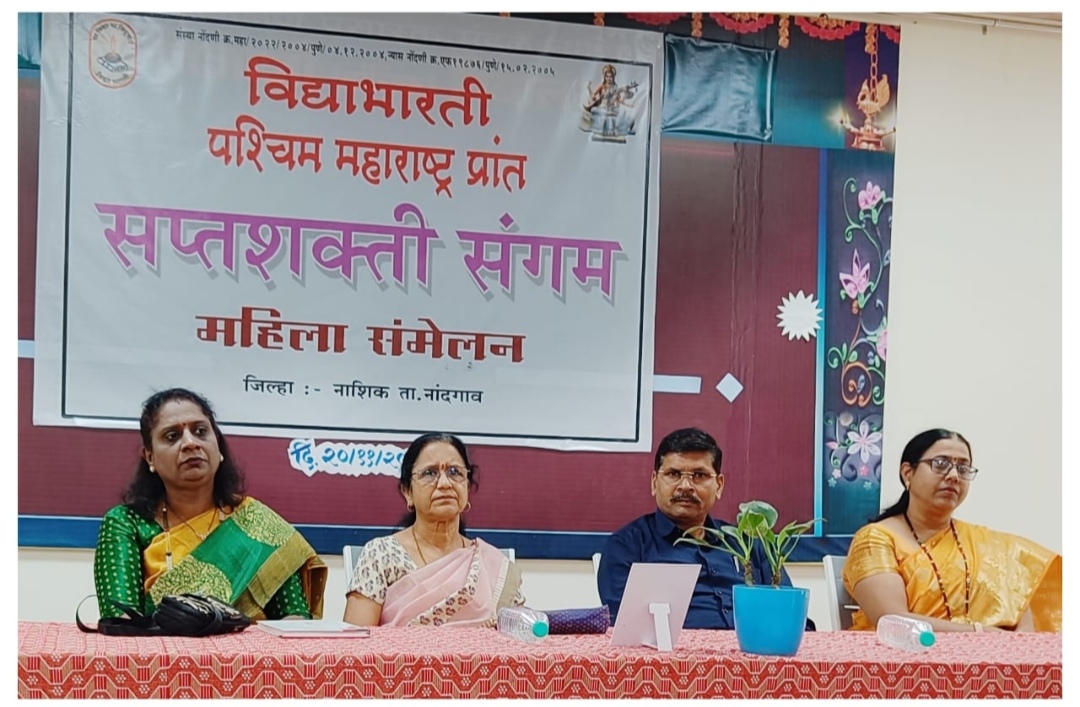 नांदगाव (प्रतिनिधी ) विद्याभारती पश्चिम महाराष्ट्र प्रांत व नाशिक शिक्षण प्रसारक मंडळ यांच्या संयुक्त विद्यमाने संघ शताब्दी निमित्ताने सप्तशक्ती संगम महिला- माता मेळावा दि. २० नोव्हेंबर २०२५ रोजी गुरुवार व्ही.जे.हायस्कूल, नांदगाव येथे गुरुदक्षिणा सभागृहात उत्साहात पार पडला. महिलांच्या क्षमतेला अधोरेखित करत त्याच्या विकासासाठी भक्कम व्यासपीठ उपलब्ध करून दिले.