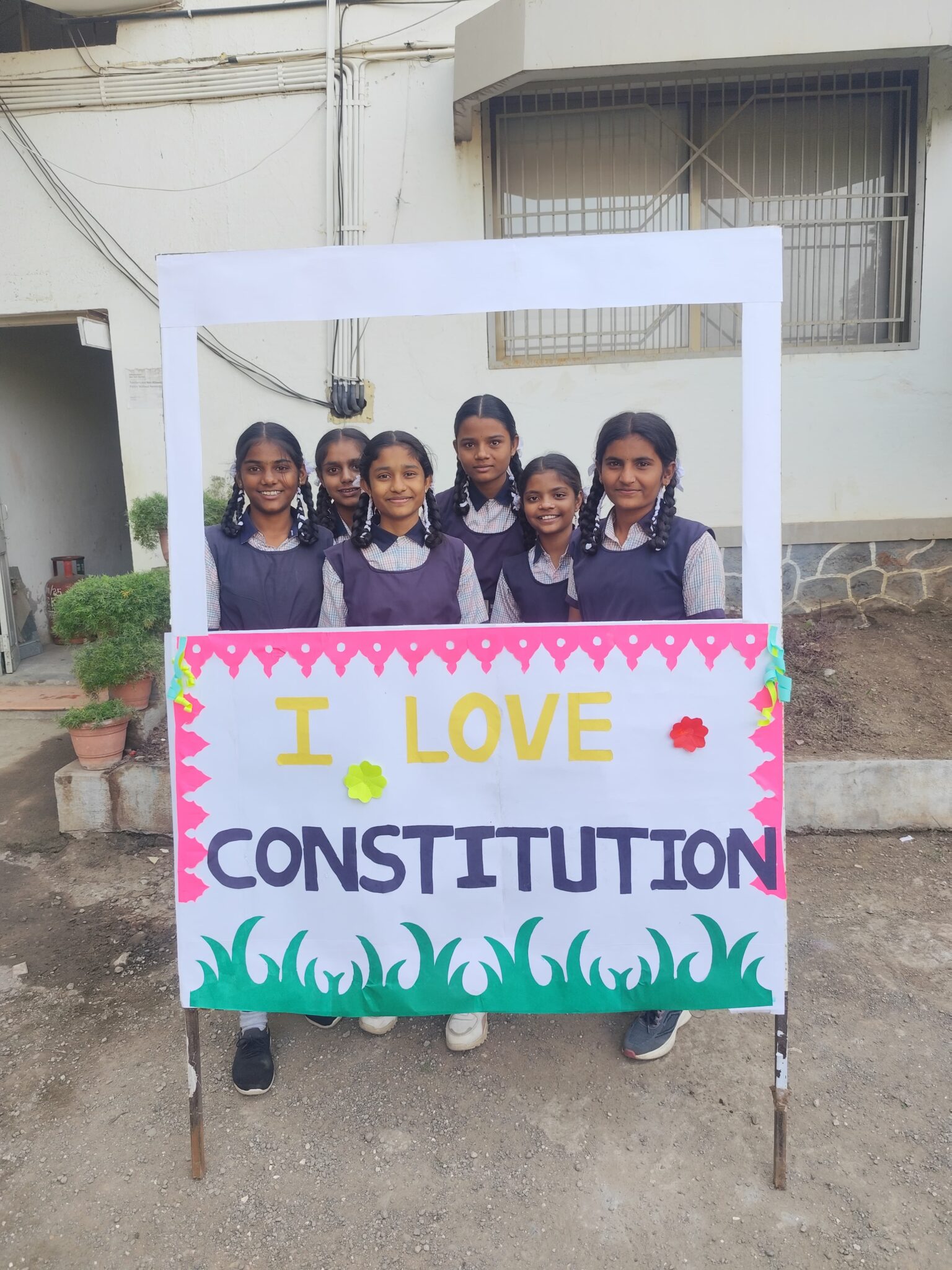 संविधान दिनानिमित्त विद्यालयात विविध उपक्रम राबविण्यात आले. यामध्ये संविधान विषयक चित्रकला व पोस्टर स्पर्धा, प्रश्नमंजुषा, संविधान विषयक व्याख्यान, गीतगायन ,संविधानातील एकता व अखंडता या मूल्यांचा अनुभव देण्यासाठी मानवी साखळी निर्मिती ,संविधान विषयक सेल्फी पॉईंट असे विविध उपक्रम राबविण्यात आले. विद्यार्थ्यांनी यावेळी आपले मनोगत व्यक्त करताना संविधानाचे महत्त्व विषद केले. विद्यालयातील विद्यार्थ्यांनी भारतीय संविधान विषयावर रेखाटलेल्या चित्रांचे प्रदर्शन विद्यालयात मांडण्यात आले होते. कला शिक्षक अनिकेत राऊत यांनी विद्यार्थ्यांना मार्गदर्शन केले. विद्यालयातील शिक्षक केतन दळवे यांनी विद्यार्थ्यांना संविधान निर्मितीची प्रक्रिया समजावून सांगितली.मुख्याध्यापक गोरख डफाळ यांनी संविधानाची रचना व त्याचे महत्व विशद केले. जगातील सर्वात मोठ्या अश्या भारतीय संविधानाबद्दल विद्यार्थ्यांनी आदर बाळगणे आवश्यक आहे असे आवाहन त्यांनी केले.