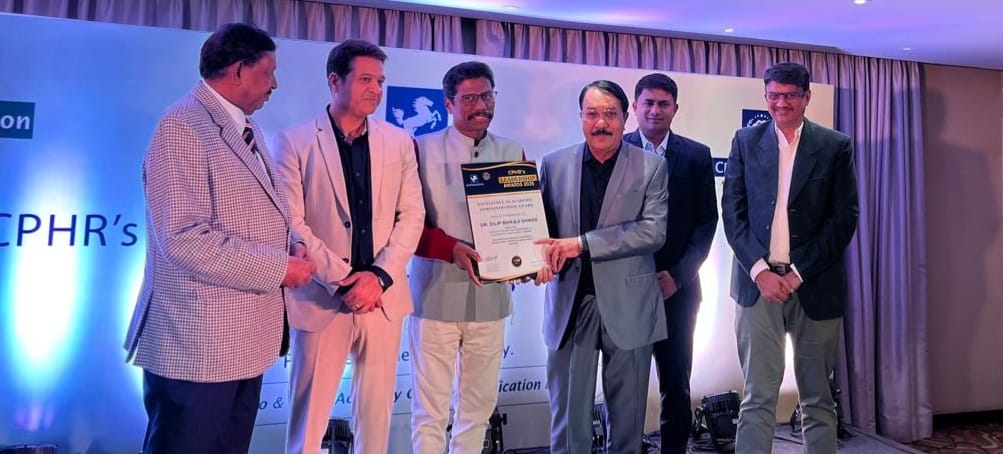 महात्मा गांधी विद्यामंदिर संचलित, समाजश्री प्रशांतदादा हिरे कॉलेज ऑफ मॅनेजमेंट अँड टेक्नॉलॉजी महाविद्यालयाचे प्राचार्य “डॉ. दिलीप शिंदे” यांनी राष्ट्रीय पातळीवर पुन्हा एकदा आपल्या नेतृत्वाची छाप पाडली आहे. त्यांना “सी. पी. एच. आर. सर्विसेस प्रायव्हेट लिमिटेड, पुणे” यांच्या वतीने आयोजित “National Leadership Summit 2025” मध्ये प्रतिष्ठित “Excellency In Academic Administration Award” हा पुरस्कार प्रदान करण्यात आला.