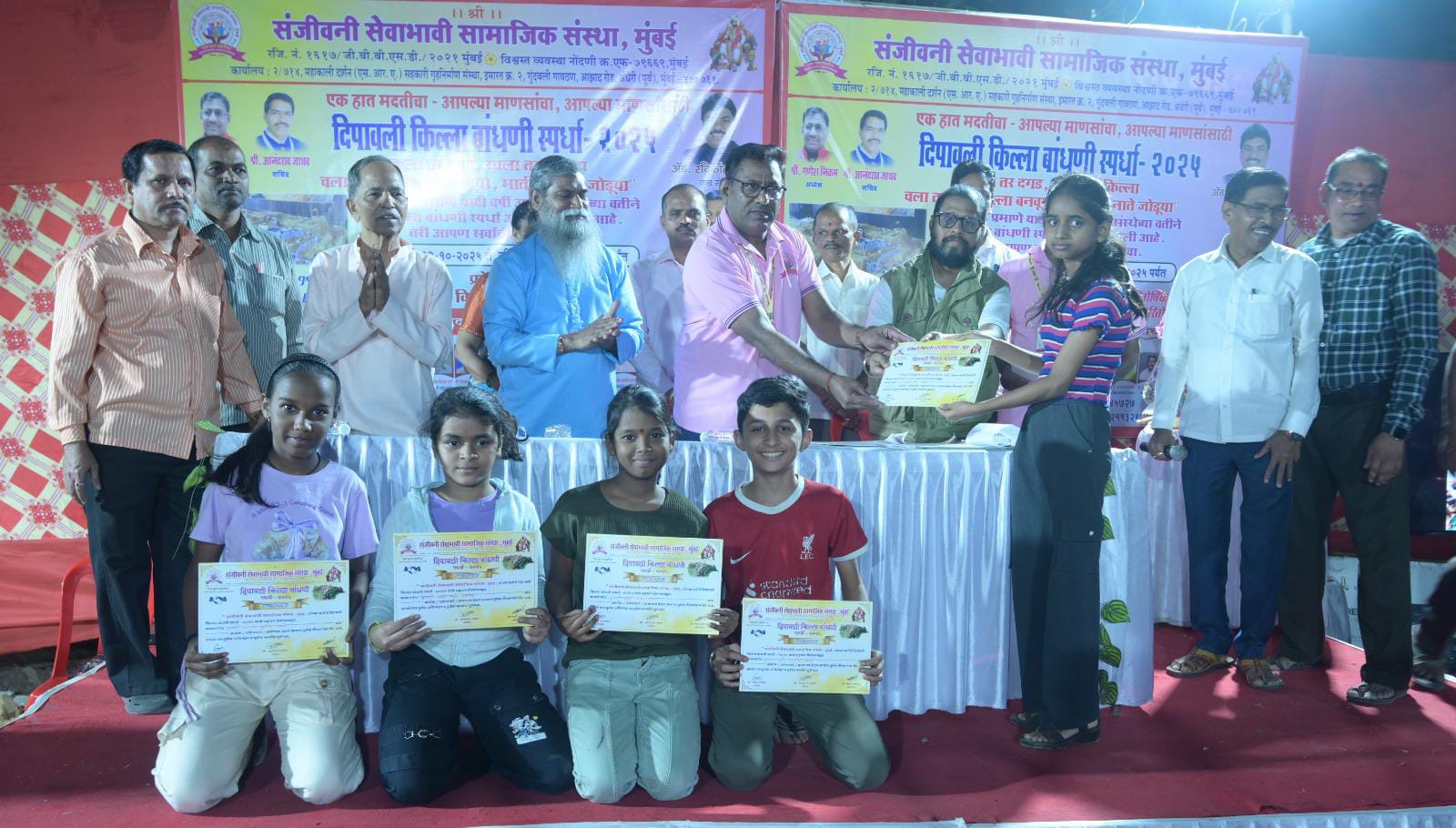 मुंबई (गुरुदत्त वाकदेकर) : संजीवनी सेवाभावी सामाजिक संस्था, गुंदवली, अंधेरी यांच्या वतीने आयोजित दीपावली किल्ला बांधणी स्पर्धा – २०२५ चा जाहीर बक्षीस वितरण समारंभ रविवारी, दि. ३० नोव्हेंबर २०२५ रोजी संपन्न झाला. कार्यक्रम उत्साहात आणि सांस्कृतिक भक्तिभावाने भरलेला होता. दिवाळीच्या सोहळ्यात मिसळलेल्या किल्ला संस्कृतीने परिसरात वेगळीच चेतना निर्माण केली. मुलांच्या कल्पकतेतून आणि तरुणांच्या सर्जनशील प्रयत्नांतून उभे राहिलेले किल्ले पाहताना मराठी वारशाची दिमाखदार छटा प्रत्येकाला भावून गेली.