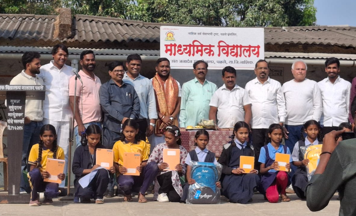 नासाकाचे अवसायक प्रदीप आव्हाड आणि नाशिक सर्व सेवाभावी ट्रस्टचे मानद व्यवस्थापक सुधाकर गोडसे यांच्या मार्गदर्शनाखाली आयोजित ‘दातृत्वाचा ज्ञानयज्ञ’ उपक्रमात निखिल सातपुते यांच्या वाढदिवसानिमित्त वह्या, रायटिंग पॅड, स्कूलबॅग, पेन्सिल अशा शैक्षणिक साहित्याचे वाटप करण्यात आले.
