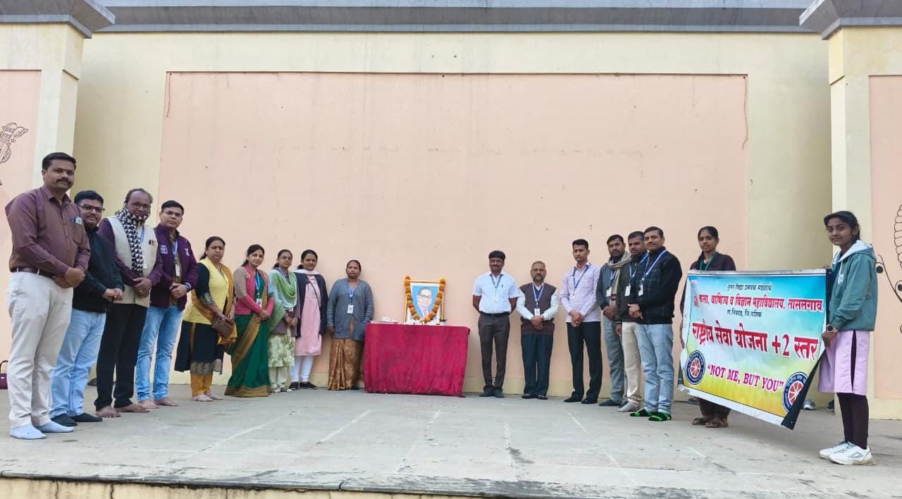 लासलगाव, ता. ६ (प्रतिनिधी ) : येथील नूतन विद्या प्रसारक मंडळ संचलित कला, वाणिज्य व विज्ञान महाविद्यालयात राष्ट्रीय सेवा योजना (+२ स्तर) विभागाच्या वतीने ६ डिसेंबर २०२५ रोजी भारतरत्न डॉ.बाबासाहेब आंबेडकर यांचा महापरीनिर्वाण दिन साजरा करण्यात आला. या प्रसंगी डॉ.बाबासाहेब आंबेकरांच्या प्रतिमेस उच्च माध्यमिक विभागाचे पर्यवेक्षक प्रा.उज्वल शेलार, प्रा.किशोर गोसावी, रा.से.यो. कार्यक्रमाधिकारी प्रा.सुनिल गायकर प्रा.देवेंद्र भांडे आणि उपस्थित सर्व शिक्षकांच्या हस्ते पुष्पहार अर्पण करून अभिवादन करण्यात आले. प्रा.मोहन बागल यांनी डॉ.बाबासाहेब आंबेडकरांच्या राजकीय, शैक्षणिक आणि सामाजिक कार्याचा सविस्तर आढावा घेतला. बाबासाहेबांचे विचार आणि त्यांचे कार्य विद्यार्थ्यांपर्यंत पोहोचले पाहिजे असे मत त्यांनी या प्रसंगी व्यक्त केले.