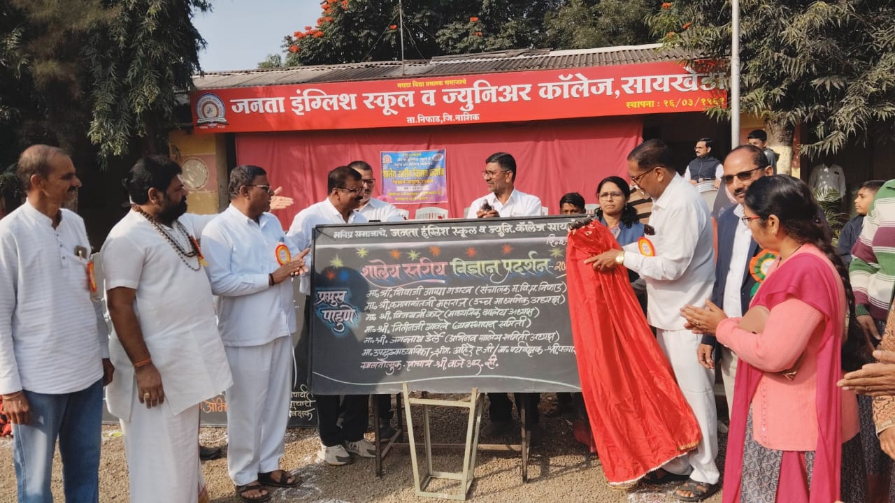 सायखेडा (प्रतिनिधी) मविप्र संचलित जनता इंग्लिश स्कूल व ज्युनिअर कॉलेज सायखेडा येथे शालेय स्तरावरील विज्ञान प्रदर्शन पार पडले, यावेळी विद्यार्थ्यांनी मोठ्या प्रमाणामध्ये उपकरणे प्रदर्शनात ठेवली .सर्वाधिक जास्त उपकरणे हे शेती संशोधनाच्या विषयी निगडित होती यामुळे बाल वैज्ञानिकांमध्ये शेतीमध्ये सर्वाधिक संशोधन करण्याची प्रवृत्ती आहे असे दिसते असे प्रतिपादन मविप्र संचालक शिवाजी आप्पा गडाख यांनी केले. कार्यक्रमाच्या अध्यक्षस्थानी भगवान बालाजी संस्थान मठाधिपती स्वामी कमलाकांतजी महाराज होते.