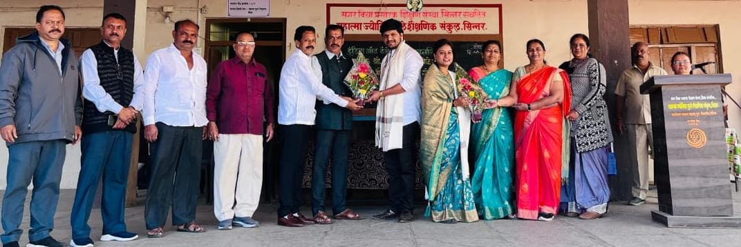 सिन्नर (प्रतिनिधी). आज दि.9 डिसेंबर 2025 रोजी “सगर विद्या प्रसारक शिक्षण संस्था” संचलित ‘महात्मा ज्योतिबा फुले ‘ विद्यालय, सिन्नर येथे इंडियाज गॉट टॅलेंट स्पर्धेतील सेमीफायनलीस्ट श्री.हर्षद व सौ.दुहिता गोळेसर यांचा संस्थेच्या वतीने यथोचित सत्कार करण्यात आला. या सत्कारास संस्थेचे अध्यक्ष नामदेव लोंढे साहेब ,सेक्रेटरी नामदेव लोणारे साहेब ,सी.एस.आर समिती अध्यक्ष दत्तात्रय गोळेसर साहेब, शा.व्य.स.माध्य.विभाग अध्यक्षा मंगलाताई झगडे मॅडम,संचालक दत्तात्रय लोणारे साहेब उपस्थित होते.