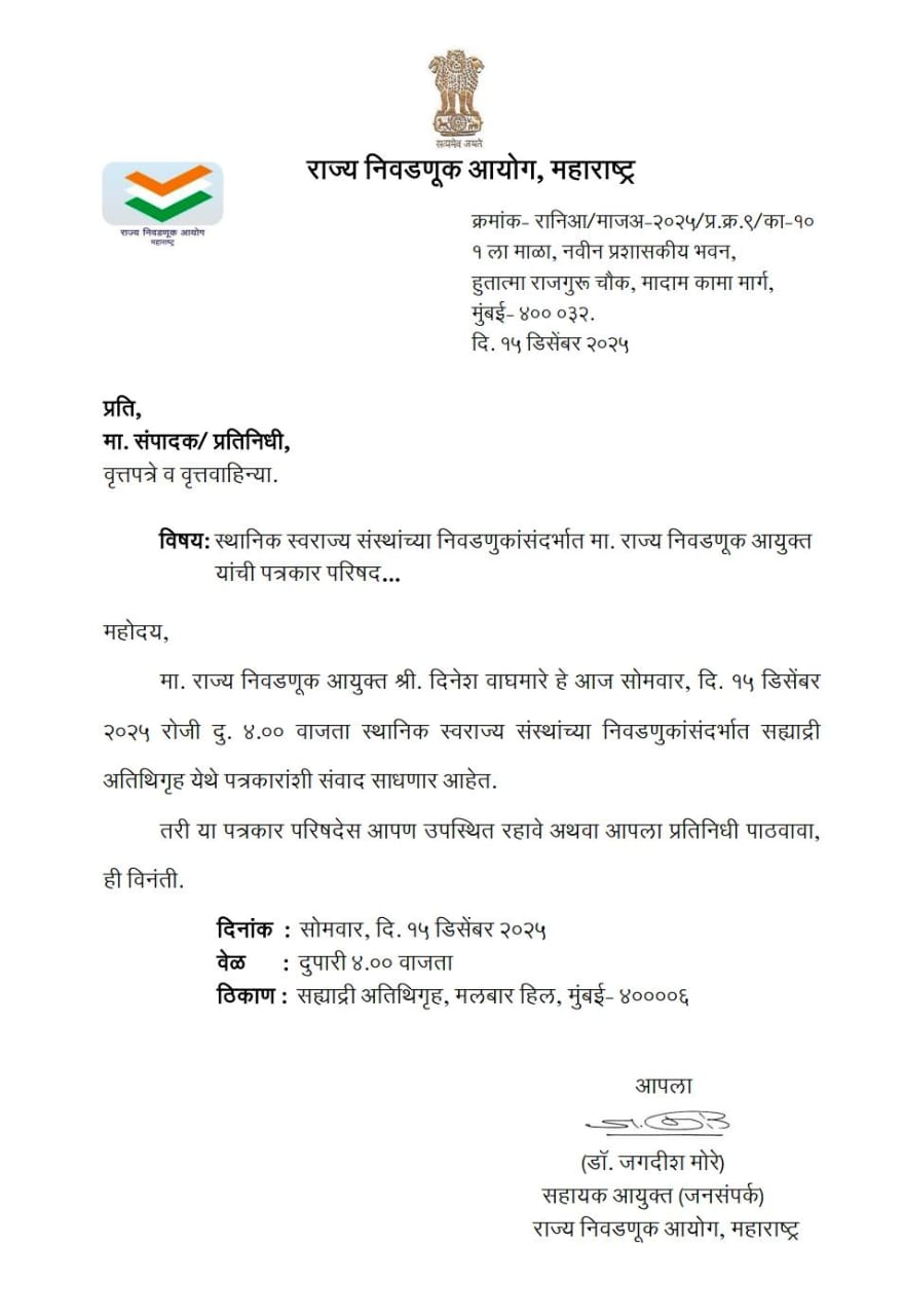 राज्य निवडणूक आयोगाची आज अतिशय महत्त्वाची पत्रकार परिषद पार पडली. गेल्या अनेक दिवसांपासून राज्यातील स्थानिक स्वराज्य संस्थांच्या निवडणुकांच्या महत्त्वाच्या टप्प्याच्या निवडणुकांची चर्चा आहे. याआधी राज्य निवडणूक आयोगाने पत्रकार परिषद घेतली तेव्हाच स्पष्ट केलं होतं की, स्थानिक स्वराज्य संस्थांच्या निवडणुका या दोन टप्प्यात होतील. त्यानुसार राज्य निवडणूक आयोगाने आधी राज्यातील नगर परिषद आणि नगर पंचायतींची निवडणूक घेतली. या निवडणुकीचे निकाल येत्या 21 डिसेंबरला लागणार आहेत. त्यानंतर आता दुसऱ्या टप्प्यातील निवडणुका होणार आहेत.