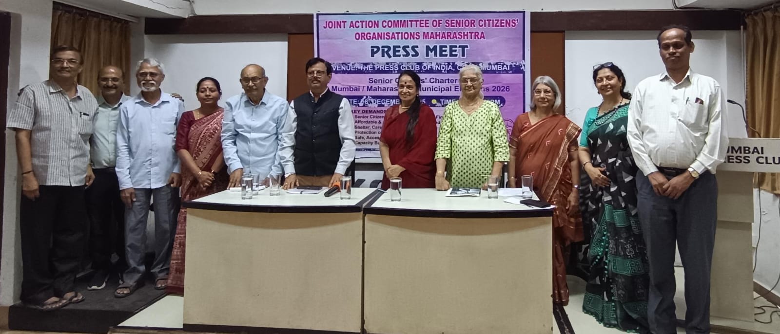 २०१२ पासून कार्यरत असलेल्या संयुक्त कृती समितीच्या मंचामध्ये २८ ज्येष्ठ नागरिक संघटना, स्वयंसेवी संस्था, संशोधक आणि शैक्षणिक संस्थांचा समावेश आहे. आगामी महानगरपालिका निवडणुकांच्या पार्श्वभूमीवर ज्येष्ठ नागरिकांची सनद (चार्टर ऑफ डिमांड्स) सादर करण्यासाठी ही पत्रकार परिषद आयोजित करण्यात आली होती. महाराष्ट्रात सध्या सुमारे १.५ कोटी ज्येष्ठ नागरिक असून ते राज्याच्या एकूण लोकसंख्येच्या ११.७ टक्के आहेत. मुंबईत ६० वर्षांवरील ज्येष्ठ नागरिकांची संख्या सुमारे १५ लाख असून, २०३१ पर्यंत ती जवळपास २४ लाखांपर्यंत पोहोचण्याचा अंदाज व्यक्त करण्यात आला आहे.