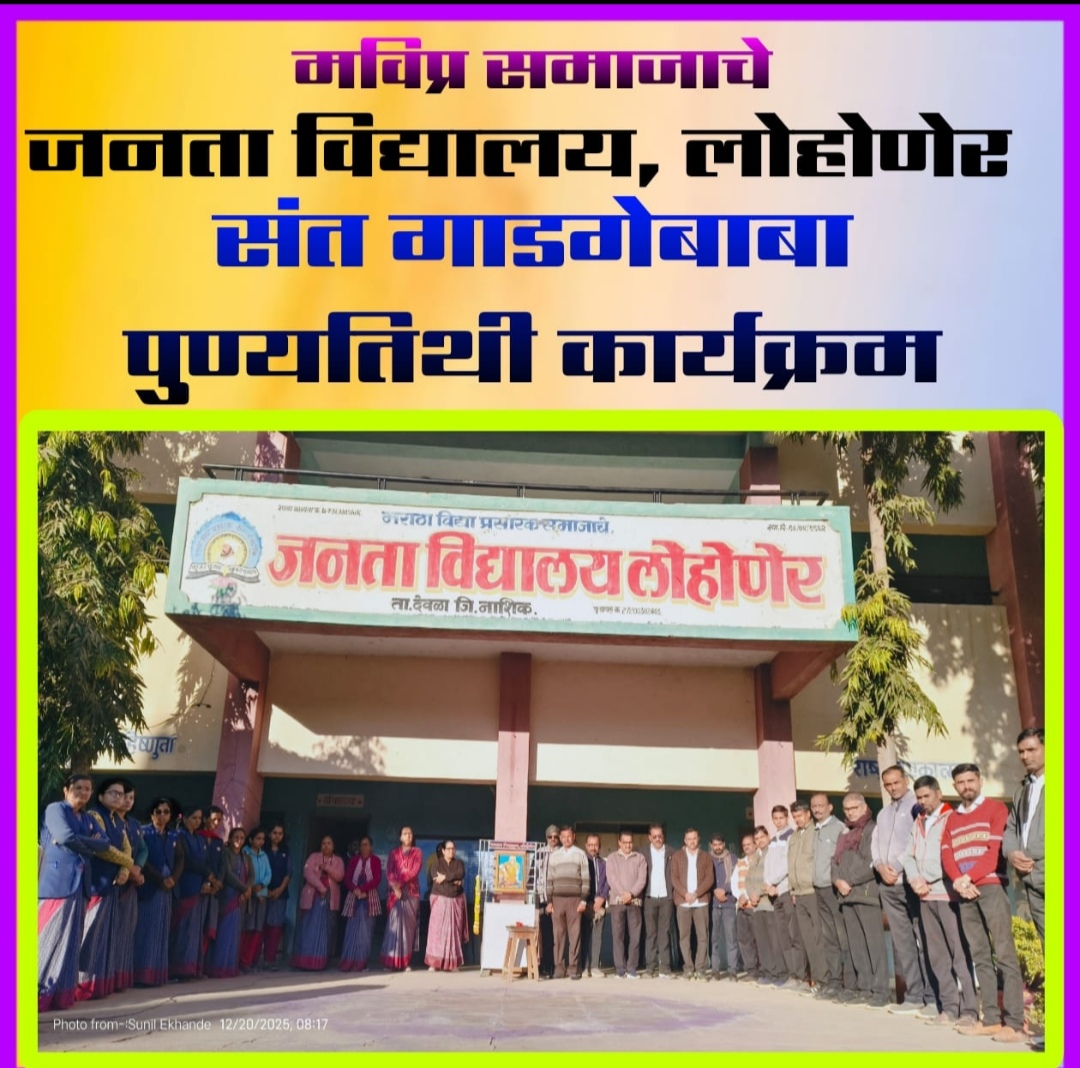 लोहोणेर-: येथील मराठा विद्या प्रसारक समाज संस्थेच्या जनता विद्यालयात थोर समाजसुधारक व संत गाडगेबाबा यांच्या पुण्यतिथीनिमित्त विनम्र अभिवादन करण्यात आले. कार्यक्रमाची सुरुवात संत गाडगेबाबा यांच्या प्रतिमेला पुष्पहार अर्पण करून करण्यात आली. कार्यक्रमाच्या अध्यक्षस्थानी मुख्याध्यापिका के. ए. शिंदे होत्या तर व्यासपीठावर पर्यवेक्षक व्ही. एम. निकम उपस्थित होते. प्रास्ताविक सांस्कृतिक समिती प्रमुख सुनिल एखंडे यांनी केले. त्यांनी संत गाडगेबाबा यांच्या स्वच्छतेविषयीचे विचार, अंधश्रद्धा निर्मूलन, श्रमप्रतिष्ठा व समाजसेवेचे महत्त्व यावर प्रकाश टाकला. यावेळी इयत्ता सहावीची विद्यार्थिनी तेजल सूर्यवंशी हिने आपल्या मनोगतात संत गाडगेबाबा यांनी हातात झाडू घेऊन समाजाला स्वच्छतेचा संदेश दिला, दानधर्मापेक्षा शिक्षण व स्वावलंबनावर भर दिला, असे सांगत विद्यार्थ्यांनी त्यांच्या विचारांचे अनुकरण करावे, असे मत व्यक्त केले. तसेच इयत्ता आठवीचा विद्यार्थी श्रेयस चौधरी याने संत गाडगेबाबा यांच्या समाजकार्याचा आढावा घेत अंधश्रद्धा, व्यसनमुक्ती व सामाजिक समतेसाठी त्यांनी केलेल्या कार्याचे महत्त्व अधोरेखित केले. यानंतर शिक्षक एम. जी. भामरे यांनी आपल्या मनोगतात संत गाडगेबाबा यांच्या जीवनकार्याची सविस्तर माहिती देत समाजातील अज्ञान, अंधश्रद्धा, अस्वच्छता व दारिद्र्याविरुद्ध त्यांनी आयुष्यभर संघर्ष केला, असे सांगितले. हातात झाडू घेऊन गावोगावी स्वच्छतेचा संदेश देणारे गाडगेबाबा हे खरे समाजप्रबोधक होते असे सांगितले. अध्यक्षीय भाषणात मुख्याध्यापिका के. ए. शिंदे यांनी संत गाडगेबाबा हे केवळ संत नव्हते तर समाजपरिवर्तनाचे दीपस्तंभ होते,असे सांगत त्यांच्या कार्याचा आदर्श विद्यार्थ्यांनी दैनंदिन जीवनात घ्यावा, असे आवाहन केले. कार्यक्रमाचे आयोजन सांस्कृतिक समितीच्या वतीने करण्यात आले. कार्यक्रम यशस्वीपणे पार पाडण्यासाठी सर्व शिक्षक व शिक्षकेत्तर सेवकांनी सहकार्य केले. सूत्रसंचालन सांस्कृतिक समिती प्रमुख सुनिल एखंडे यांनी केले.