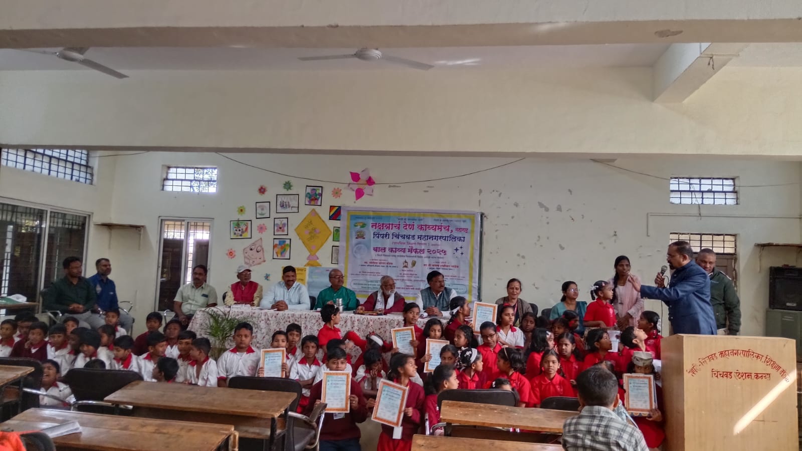 आयोजित…बाल काव्य मैफल 2025 पिंपरी चिंचवड मनपा शाळेतील विद्यार्थ्यांची विशेष अनोखी काव्य मैफल आयोजित केली होती.