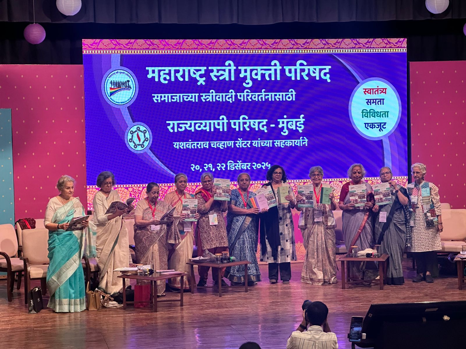 मुंबई (गुरुदत्त वाकदेकर) : स्त्री मुक्ती परिषदेच्या सुवर्ण महोत्सवी वर्षानिमित्त आयोजित केलेल्या तीन दिवसीय राज्यस्तरीय परिषदेचा समारोप आज मोठ्या उत्साहात यशवंतराव चव्हाण सेंटर येथे पार पडला. या समारोपप्रसंगी स्त्री मुक्ती परिषदेचा सविस्तर ‘ठराव जाहीरनामा’ जाहीर करण्यात आला. या वेळी महाराष्ट्र स्त्री मुक्ती परिषदेच्या अध्यक्ष शारदा साठे, डॉ. छाया दातार, डॉ. प्रज्ञा दया पवार यांच्यासह अनेक मान्यवर उपस्थित होते.