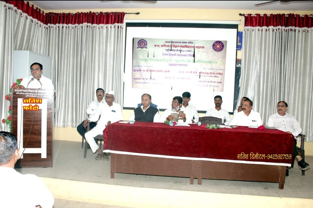 नांदगाव (प्रतिनिधी ) कला, वाणिज्य व विज्ञान महाविद्यालय, नांदगाव येथे राष्ट्रीय सेवा योजना+2 स्तरच्या ‘विशेष हिवाळी श्रमसंस्कार शिबिराचा उद्घाटन सोहळा’ म.वि.प्र. संचालक इंजि.अमितभाऊ बोरसे पाटील,मा.दिपक (आण्णा) म्हस्के व मान्यवरांच्या उपस्थितीत संपन्न झाला. अध्यक्षीय मनोगतातून इंजि.अमित बोरसे पाटील यांनी राष्ट्रीय सेवा योजनेमुळे विद्यार्थ्यांना श्रमसंस्कार प्राप्त होतात. समाजात वावरताना सामाजिक बांधिलकी जोपासण्याचे कौशल्य आत्मसात होते.राष्ट्रीय सेवा योजनेतील सहभागामुळे विद्यार्थ्यांमध्ये नेतृत्व गुण विकसित होत असल्याचे सुतोवाच केले. त्यांनी आपल्या मनोगतातून कृत्रिम बुद्धिमत्तेचा (आर्टिफिशल इंटेलिजन्स) वापर कृषी क्षेत्राच्या शाश्वत विकासास सहाय्यभूत असल्याचे सांगितले. शिबीरार्थी विद्यार्थ्यांनी स्वच्छतेचा संदेश देणारे राष्ट्रसंत गाडगे महाराजांचा आदर्श बाळगण्याचे आवाहन केले.महाविद्यालयाचे प्राचार्य डॉ.आर.एन. भवरे यांनी विद्यार्थ्यांना राष्ट्रीय सेवा योजनाचे महत्व विविध उदाहरणे देऊन पटवून दिले. शिबिर कालावधीत झालेले संस्कार विद्यार्थ्यांना भावी आयुष्यात निश्चितच कामी येत असल्याचे प्रतिपादित केले. स्थानिक व्यवस्थापन समितीचे सदस्य मा. बाळासाहेब कवडे यांनी आपल्या मनोगतातून नांदगाव तालुक्यात सामाजिक कार्यामध्ये कै.वामनराव पाटील व त्यांचे आजोबा कै. कवडे बाबा यांनी दिलेल्या योगदानाची विद्यार्थ्यांना जाणीव करून दिली.समाज उपयोगी कार्य करणारा व्यक्ती दीर्घकाळ कार्यरूपाने स्मरणात राहत असल्याने विद्यार्थ्यांनी समाजात आढळणाऱ्या चुकीच्या प्रथा, व्यसनाधीनता व गुन्हेगारी प्रवृत्ती नष्ट करण्यासाठी विद्यार्थ्यांनी पुढाकार घेण्याचे आवाहन याप्रसंगी केले. सदर प्रसंगी मंचावर मा. दिपक (आण्णा) म्हस्के, कनिष्ठ महाविद्यालय स्थानिक व्यवस्थापन समितीचे अध्यक्ष मा.शरद पाटील,मा.विश्वासराव कवडे, मा.रमेश (आण्णा) बोरसे, मा. राहुल पवार,प्रथमेश पवार, महाविद्यालयाचे प्राचार्य डॉ.आर.एन.भवरे, महाविद्यालयाचे उपप्राचार्य डॉ.एस.ए.मराठे, कनिष्ठ महाविद्यालयाचे उपप्राचार्य प्रा.डी.एम.राठोड उपस्थित होते. कार्यक्रमाचे प्रास्ताविक व सूत्रसंचालन राष्ट्रीय सेवा योजना +2स्तरचे कार्यक्रम अधिकारी प्रा.बी.के.पवार यांनी केले तर आभार प्रदर्शन प्रा. जी.व्ही.बोरसे यांनी केले.सदर कार्यक्रमासाठी महाविद्यालयातील सर्व प्राध्यापक, शिबिरार्थी स्वयंसेवक व शिक्षकेतर कर्मचारी उपस्थित होते. कार्यक्रम यशस्वी करण्यासाठी राष्ट्रीय सेवा योजना सहा. कार्यक्रम अधिकारी प्रा.एस.सी. पैठणकर व सहाय्यक श्रीमती प्रा.टी.एन.आहेर यांनी परिश्रम घेतले.