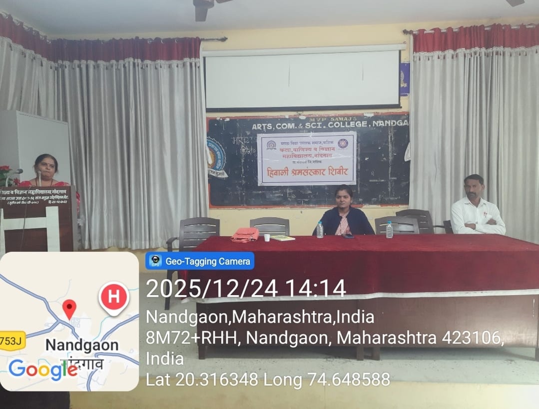 नांदगाव (प्रतिनिधी ) कला, वाणिज्य व विज्ञान महाविद्यालय, नांदगावच्या राष्ट्रीय सेवा योजना +2 स्तरच्या वतीने आयोजित ‘विशेष हिवाळी श्रमसंस्कार शिबिरात’ ‘डिजिटल साक्षरता व आजचा युवक’ या विषयावर प्रा.श्रीमती सरोज कुलकर्णी यांचे व्याख्यान संपन्न झाले. त्यांनी आपल्या व्याख्यानातून विद्यार्थ्यांना डिजिटल साक्षरता, आर्टिफिशियल इंटेलिजन्स, डाटा सायन्स, रोबोटिक्स यांचा मानवी जीवनात होत असणाऱ्या वेगवेगळ्या परिस्थितीतील वापराबाबत विविध उदाहरणे देऊन सविस्तर मार्गदर्शन केले. ऑनलाईन प्लॅटफॉर्मस् चा वापर आपण दैनंदिन व्यवहार मोठ्या प्रमाणावर करत असतो काही प्रसंगी आपली फसवणूक होण्याची शक्यता असते म्हणून आपल्याजवळ असणारी गोपनीय माहिती,ओटीपी, पासवर्डची माहिती मागणीकर्त्यांना देऊ नये यासंबंधीही त्यांनी विद्यार्थ्यांमध्ये जनजागृती केली. कौशल्यपूर्ण डिजिटल साक्षरतेचे ज्ञान असणारा व्यक्ती त्यातून अर्थाजनही करू शकतो असे त्यांनी सुतोवाच केले. डिजिटल साक्षरतेचा आपल्या दैनंदिन जीवनात चांगल्या कामासाठी वापर करावा असे आवाहन केले. कार्यक्रमाचे सूत्रसंचालन राष्ट्रीय सेवा योजना +2 स्तर कार्यक्रम अधिकारी प्रा.बी.के.पवार यांनी केले. सदर कार्यक्रमासाठी शिबिरार्थी स्वयंसेवक उपस्थित होते.कार्यक्रम यशस्वी करण्यासाठी सहा.कार्यक्रम अधिकारी प्रा.एस.सी.पैठणकर व सहा. कार्यक्रम अधिकारी प्रा. श्रीमती टी.एन.आहेर यांनी परिश्रम घेतले.