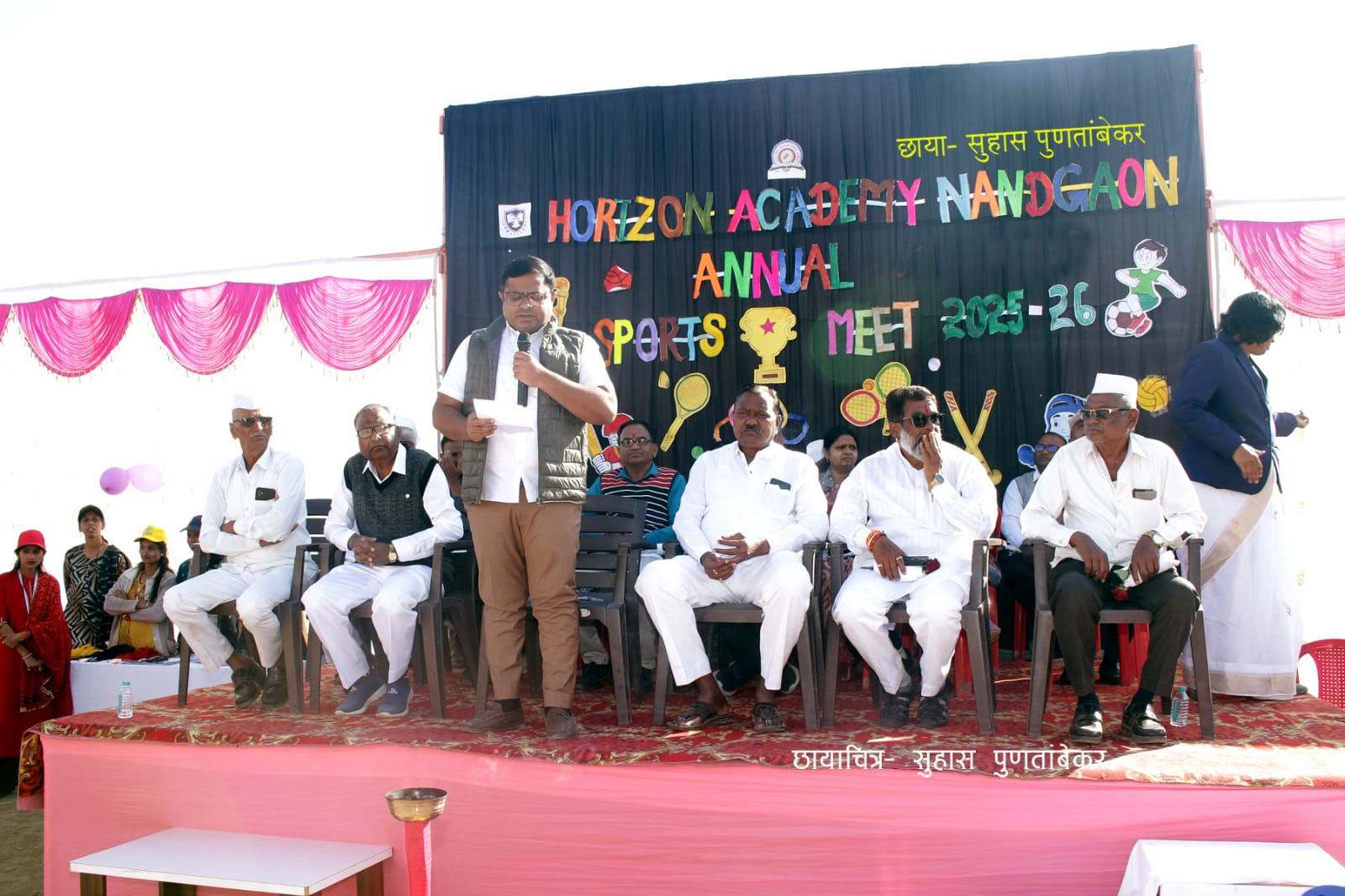 मराठा विद्या प्रसारक समाजाचे, होरायझन अकॅडमी,नांदगाव शाळेत वार्षिक क्रीडा संमेलनाचे आयोजन मोठ्या उत्साहात करण्यात आले होते.या क्रीडा संमेलनाचे उद्घाटन मराठा विद्या प्रसारक समाजाचे, नांदगाव तालुका संचालक इंजि. अमित बोरसे-पाटील यांच्या हस्ते करण्यात आले. कार्यक्रमाच्या सुरुवातीलाच विद्यार्थ्यांनी शिस्तबद्ध संचलन करून उपस्थितांचे लक्ष वेधून घेतले.