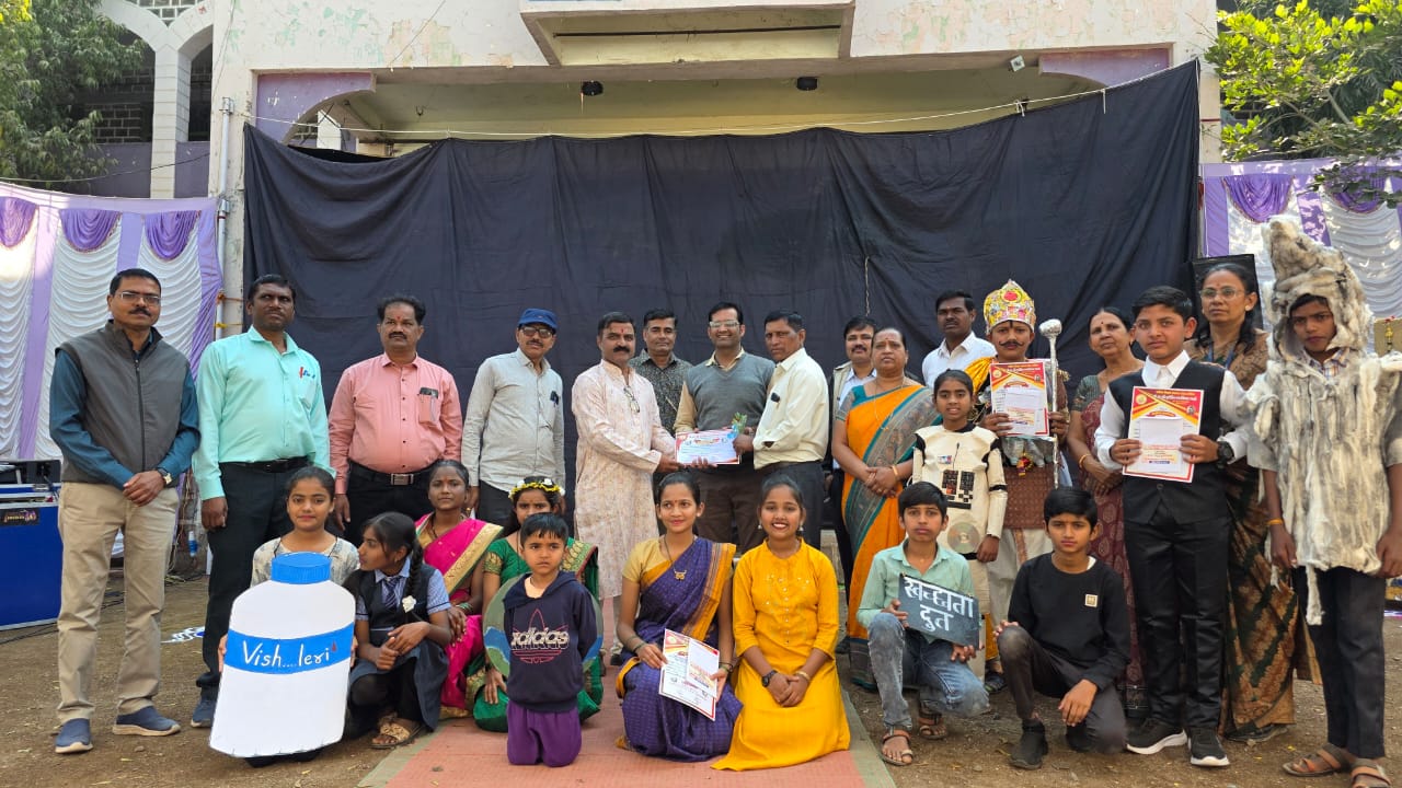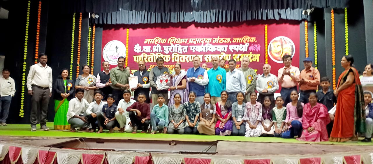 अंतिम फेरीमध्ये सहभागी तीन एकांकिका पैकी ‘शेवटची हाक पृथ्वीची’ ही एकांकिका सर्वोत्कृष्ट ठरली. एकांकिकेचा विषय होता प्लास्टिकचे जगावरील संकट यासाठी शालेय समितीचे अध्यक्ष प्रेरणा श्री. विजय चोपडा यांची होती तर मार्गदर्शन विद्यालयाचे मुख्याध्यापक श्री. खंडू खालकर यांनी केले. एकांकिकेतील कलाकार म्हणून कृष्णा सानप-सुत्रधार, ओमकार सानप -प्लास्टिक महाराज, आम्रपाली उशिरे- ई- कचरा (रोबोटिक),वेदांत काकळीज- वायू कोमल राहणे- नदी, काजल चव्हाण- पृथ्वीमाता, आराध्या पाटील-काकू, श्रावणी गांगुर्डे-संजना, सार्थ काकळीज -मायक्रो प्लास्टिक,दिव्या राहणे- बालिका, निशा मोकळ -आजी ,क्रांती चव्हाण- प्लास्टिक बॉटल, शिवा काकळीज- स्वच्छता दूत, आणि वेदांत सोनवणे याने भविष्यातील मानव म्हणून पात्र साकारले.एकांकिकेचे दिग्दर्शक स्वप्निल महाले, लेखन आणि सह दिग्दर्शन चव्हाण ज्योत्स्ना आण्णासाहेब यांनी केले. संगीत साथ नंदू दवंगे यांनी दिली, नेपथ्य दिलीप भडांगे यांचे होते. वेशभूषेसाठी रत्नप्रभा पाटील, निवेदक म्हणून योगेश कुलकर्णी, इतर तांत्रिक सहाय्य सुनील हिंगमिरे, प्रशांत वाघ यांनी परिश्रम घेतले. ग्रामीण भागातील विद्यार्थ्यांनी आपली कला उत्कृष्टपणे सादर केली. अत्यंत कमी खर्चात नेपथ्य करण्यात आले. अगदी कलाकारांचे ड्रेस सुद्धा भाड्याने आणलेले नव्हते. ज्वलंत विषयावर आधारित कथालेखन श्रीमती ज्योत्स्ना चव्हाण मॅडम यांनी केले. दिग्दर्शक, सर्व कलाकार आणि टीमचे सर्व घटक, मार्गदर्शक, सपोर्ट स्टाफ यांनी सर्वोत्तम योगदान दिले. ‘परीक्षकांनी कुठल्याही दबावाला बळी न पडता निरपेक्षपणे परीक्षण करावे याबाबत स्पष्ट सूचना सेक्रेटरी येवला सरांनी दिल्याचे परीक्षकांनी सांगितले.’ – संस्थेचे सेक्रेटरी श्री येवला सर आणि संस्था पदाधिकारी तसेच शालेय समिती अध्यक्ष विजय चोपडा, शालेय व्यवस्थापन समिती अध्यक्ष मनिष चव्हाण, विद्यार्थी सुरक्षा समिती अध्यक्ष काशिनाथ सोनवणे आणि विविध समित्यांचे पदाधिकारी यांनी शाळा प्रमुख आणि संपूर्ण टीमचे अभिनंदन केले आहे.