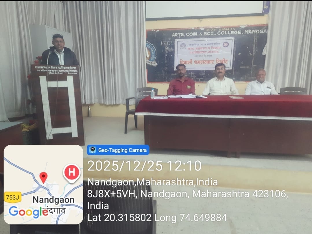 नांदगाव ( प्रतिनिधी) कला, वाणिज्य व विज्ञान महाविद्यालय, नांदगावच्या राष्ट्रीय सेवा योजना +2 स्तरच्या वतीने आयोजित ‘विशेष हिवाळी श्रमसंस्कार शिबिरात’ आज गुरुवार, दिनांक 25/12/ 2025 रोजी ‘ऊर्जा, कृषी व पर्यावरण क्षेत्राच्या शाश्वत विकासासाठी तरुणाई’ या विषयावर प्रा.जी.व्ही.बोरसे यांचे व्याख्यान संपन्न झाले. त्यांनी आपल्या व्याख्यानातून विद्यार्थ्यांना प्रथमतः ‘शाश्वत विकास’ ही संकल्पना सविस्तर समजावून दिली.आजच्या धकाधकीच्या जीवनात वाढत्या लोकसंख्येच्या सर्व गरजा पूर्ण करण्यासाठी, मानवी जीवन भौतिक सुखसुविधांनी सुखकर व्हावे यासाठी ज्या कृती केल्या जात आहे त्यामुळे मोठा धोका निर्माण झाल्याचे सांगितले. ज्या वेगाने वेगवेगळ्या क्षेत्रांमध्ये विकासाची घोडदौड चालू आहे ती आता रोखता येणार नाही परंतु दीर्घकालीन विचार करून वेगवेगळ्या क्षेत्रांमध्ये बदल घडवून आणणे क्रमप्राप्त असल्याचे त्यांनी आपल्या मनोगतातून व्यक्त केले.