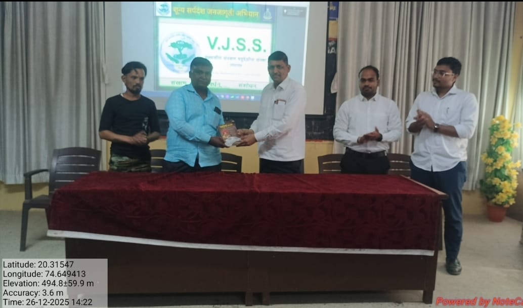 नांदगाव( प्रतिनिधी)कला, वाणिज्य व विज्ञान महाविद्यालय, नांदगाव येथे राष्ट्रीय सेवा योजना +2 स्तरच्या वतीने आयोजित ‘विशेष हिवाळी श्रमसंस्कार शिबिरात’ या. प्रभाकर निकुंभ (अध्यक्ष, वन्यजीव संवर्धन समिती, नांदगाव) यांचे ‘वन्यजीव संवर्धन’ या विषयावर व्याख्यान आयोजित करण्यात आले.सदर प्रसंगी व्याख्याते या. प्रभाकर निकुंभ यांनी विद्यार्थ्यांना मानवजातीच्या कल्याणासाठी वन्यजीवांचे संवर्धन करण्याची नितांत आवश्यकता असल्याचे सांगितले. त्यांनी आपल्या व्याख्यानातून शून्य सर्पदंश जनजागृती उपक्रमांतर्गत विद्यार्थ्यांना सापांच्या विविध प्रजातींची माहिती दिली. त्यातील विषारी व बिनविषारी साप कोणते आहेत हे पावर पॉइंट प्रेझेंटेशनच्या माध्यमातून समजावून दिले. सापांविषयी समाजात अंधश्रद्धा व गैरसमज आढळतात.