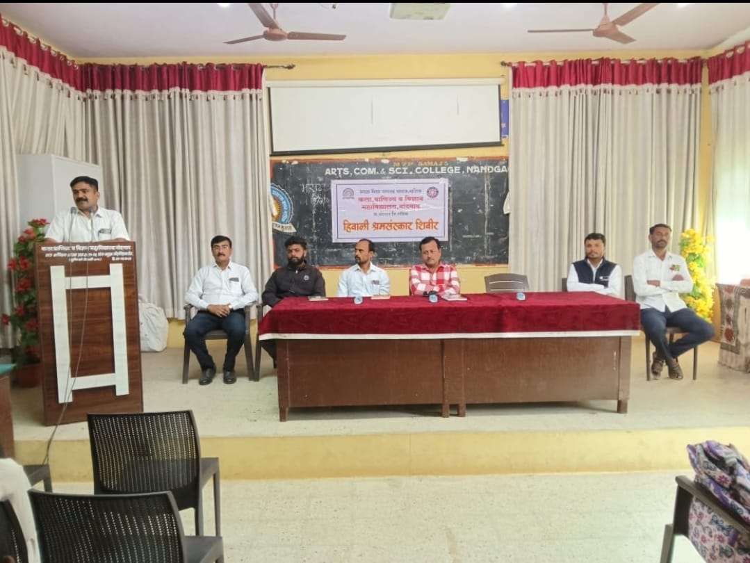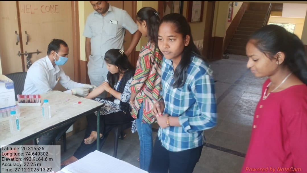 नांदगाव( प्रतिनिधी) कला, वाणिज्य व विज्ञान महाविद्यालय, नांदगावच्या राष्ट्रीय सेवा योजना +2 स्तरच्या ‘विशेष हिवाळी श्रमसंस्कार शिबिरात’ शिबिरार्थी स्वयंसेवकांची आरोग्य तपासणी संपन्न झाली. नांदगाव ग्रामीण रुग्णालयाच्या पथकातील डॉ.गरुड, तंत्रज्ञ राम काळे व सहाय्यक राहुल सर यांनी 80 शिबिरार्थी स्वयंसेवकांच्या विविध रक्त चाचण्या आरोग्य तपासणी शिबिरात केल्या. सदर प्रसंगी कनिष्ठ महाविद्यालयाचे प्रा.अजय पानसरे यांनी ‘उत्तम आरोग्यासाठी चांगल्या सवयी’ या विषयावर व्याख्यान दिले. त्यांनी आपल्या व्याख्यानातून विद्यार्थ्यांना आपले आरोग्य निरामय, सुदृढ व ताणतणावरहीत ठेवण्यासाठी नियमित व्यायाम, योग व प्राणायाम करण्याचा सल्ला दिला. मैदानी खेळांमध्ये सहभाग घेतल्याने शारीरिक हालचाली जलद गतीने होत असल्याने स्नायू पिळदार बनतात व शरीरयष्टी सुडौल होण्यास मदत होत असल्याचे सांगून शिबिरार्थी स्वयंसेवकांना मैदानी खेळांवर लक्ष केंद्रित करण्याचे आवाहन केले.