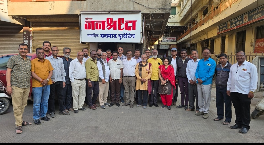 जल्लोष करताना नांदगाव–मनमाड मराठी पत्रकार संघाचे सदस्य.