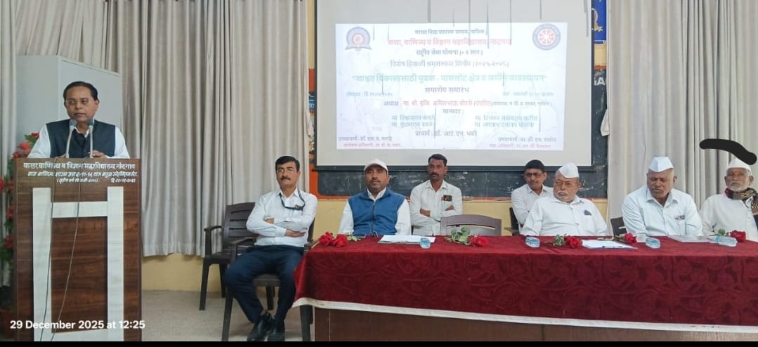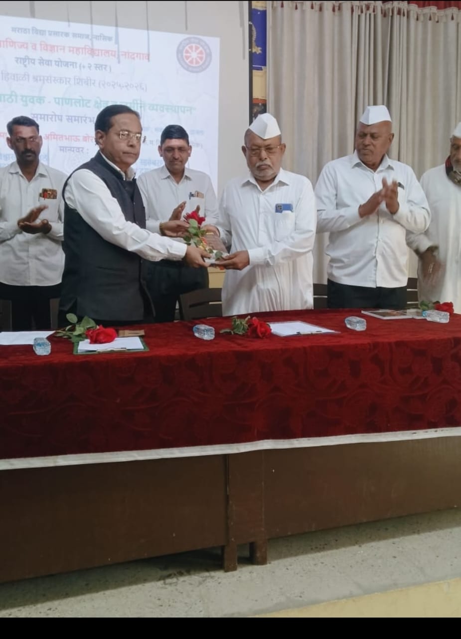 नांदगाव (प्रतिनिधी ) कला, वाणिज्य व विज्ञान महाविद्यालय, नांदगावच्या राष्ट्रीय सेवा योजना+2 स्तरचे ‘विशेष हिवाळी श्रमसंस्कार शिबिराची’ सांगता उत्साहात झाली. समारोप समारंभासाठी मंचावर म.वि.प्र.समाज संस्थेचे सभासद जगन्नाथराव चोळके,सुदामराव काळे, दत्तू पाटील काकळीज, महाविद्यालयाचे प्राचार्य डॉ. आर.एन.भवरे, महाविद्यालयाचे उपप्राचार्य डॉ.एस.ए.मराठे, कनिष्ठ महाविद्यालयाचे उपप्राचार्य प्रा.डी.एम.राठोड, कला व वाणिज्य विभागाचे प्रमुख प्रा.जी.व्ही.बोरसे उपस्थित होते