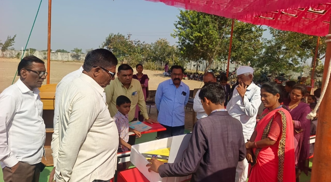 आदर्श इंग्लिश मेडिअम स्कूल च्या मुख्याध्यापिका आहेर शितल यांनी प्रास्ताविकात छंद विज्ञान प्रदर्शनाचा हेतू स्पष्ट केला. यावेळी विद्यार्थ्यांनी तयार केलेल्या विज्ञान प्रतिकृती दालनाचे उद्घाटन मान्यवरांच्या हस्ते करण्यात आले.विज्ञान प्रदर्शन हे इयत्ता पहिली ते आठवी दोन गटात घेण्यात आले.विज्ञान प्रदर्शनाच्या निमित्ताने विद्यार्थ्यांनी २० वैज्ञानिक उपकरणे सादर केली. मान्यवरांच्या वतीने उपकरणांचे निरीक्षण करण्यात आले.यावेळी मान्यवरांनी प्रदर्शनात मांडलेल्या जलशुद्धीकरण आम्ल वर्षा, सूर्यमाला, स्मार्ट ब्रिज, स्मार्ट सिटी, चंद्रयान, हायड्रोलीक जेसीबी,शेतीपिकांसाठी उपयुक्त तोफ,वॉटर प्रेशर गॅझेट,हाऊस सेफ्टी अलार्म,सोलर स्प्रे पंप, ज्वालामुखी,अशा विविध उपकरणांची माहिती घेत मान्यवर श्री. सिद्धांर्थ संसारे,श्री.नरेद्र कांबळे यांनी विद्यार्थ्यांना विविध प्रश्न विचारले व विद्यार्थ्यांनी आपल्या उपकरणांविषयी माहिती देत प्रश्नांची उत्तरे दिली.म.वि.प्र. नांदगाव संचालक श्री.अमितभाऊ बोरसे पाटील यांनी विद्यार्थ्यांना शुभेच्छा दिल्यात.यावेळी प्राचार्य डाँ. डि. डि गव्हाने यांनी आपले मनोगत व्यक्त करत विज्ञान प्रदर्शनाच्या माध्यमातून विद्यार्थ्यांनी वैज्ञानिक दृष्टिकोन अंगिकारला पाहिजे त्याचबरोबर आपल्यात असलेल्या संशोधक वृत्तीला चालना मिळण्यासाठी अशा प्रदर्शनात जास्तीत जास्त सहभाग घेण्याचे आवाहन केले. विज्ञान प्रदर्शन यशस्वीपणे पार पाडण्यासाठी उपस्थित सर्वच शिक्षिका, केतर कर्मचार्यांचे सहकार्य लाभले.