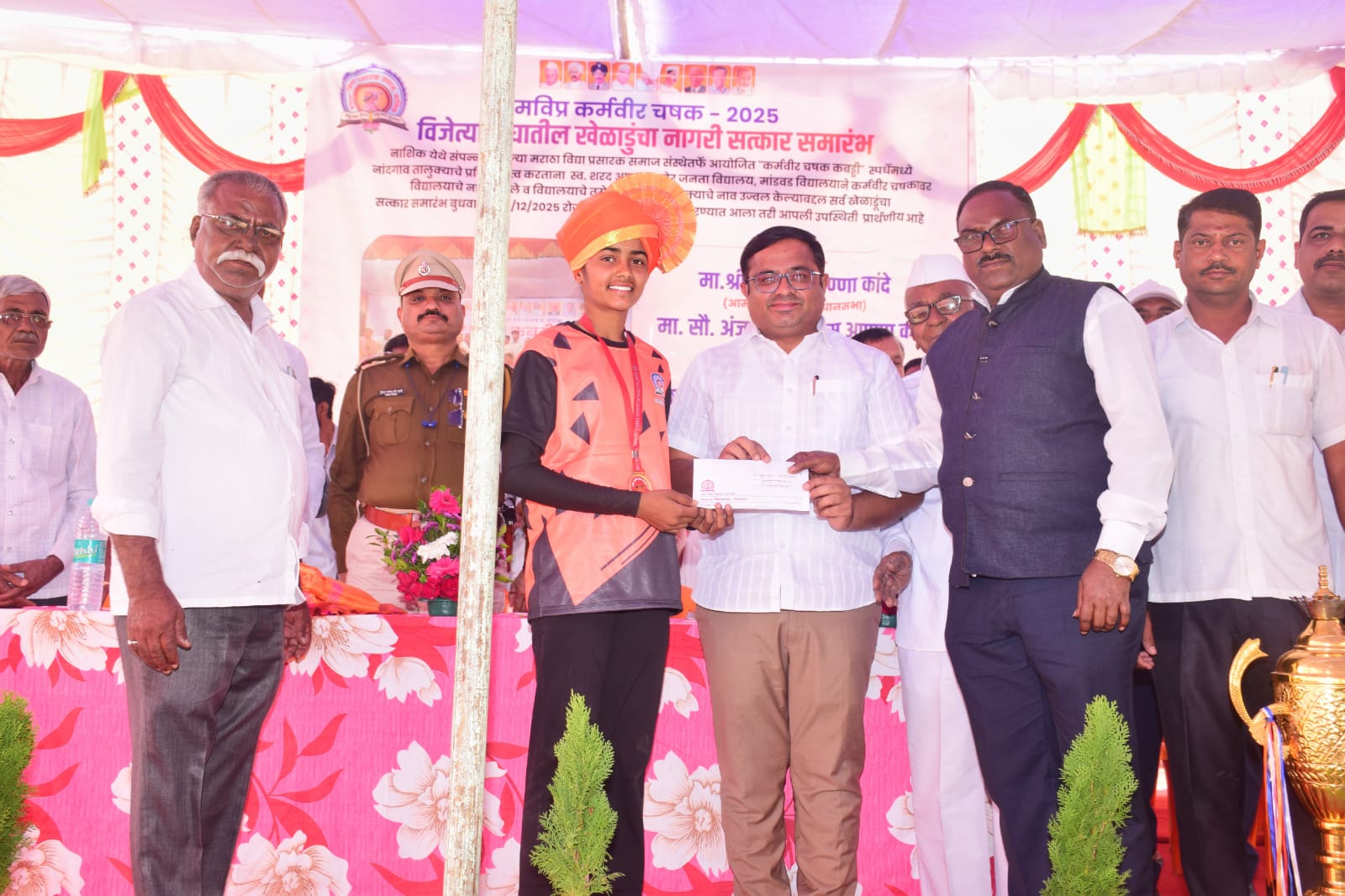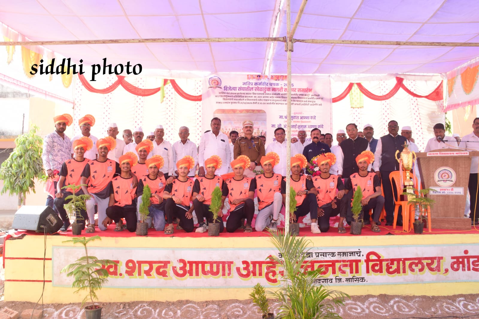 यावेळेस नांदगाव पोलीस निरीक्षक भदाणे साहेब यांनी विद्यार्थ्यांना खेळाकडे करिअर म्हणून बघावे व पालकांनीही विद्यार्थ्यांना खेळामध्ये प्रोत्साहन द्यावे असे संबोधित केले. संस्थेचे संचालक अमित भाऊ यांनी आपल्या अध्यक्षीय भाषणात ग्रामीण भागातील विद्यार्थ्यांनी मिळवलेल्या या चषकामुळे एक मविप्र नांदगाव संचालक म्हणून मला सार्थ अभिमान आहे.यापुढे विद्यार्थ्यांच्या खेळण्यासाठी लागणाऱ्या क्रीडा साहित्य व इतर सुख सुविधा संस्थेच्या माध्यमातून विद्यार्थ्यांना पुरवण्यात येतील, विद्यार्थ्यांच्या क्रीडा कला या अंगभूत क्षमतांना वाव देण्यासाठी संस्थेमार्फत राबवल्या जाणाऱ्या विविध स्पर्धांमध्ये सहभाग घेऊन आपली पात्रता सिद्ध करावी व गावाचे तालुक्याचे नाव मोठे करावे असे आव्हान केले.