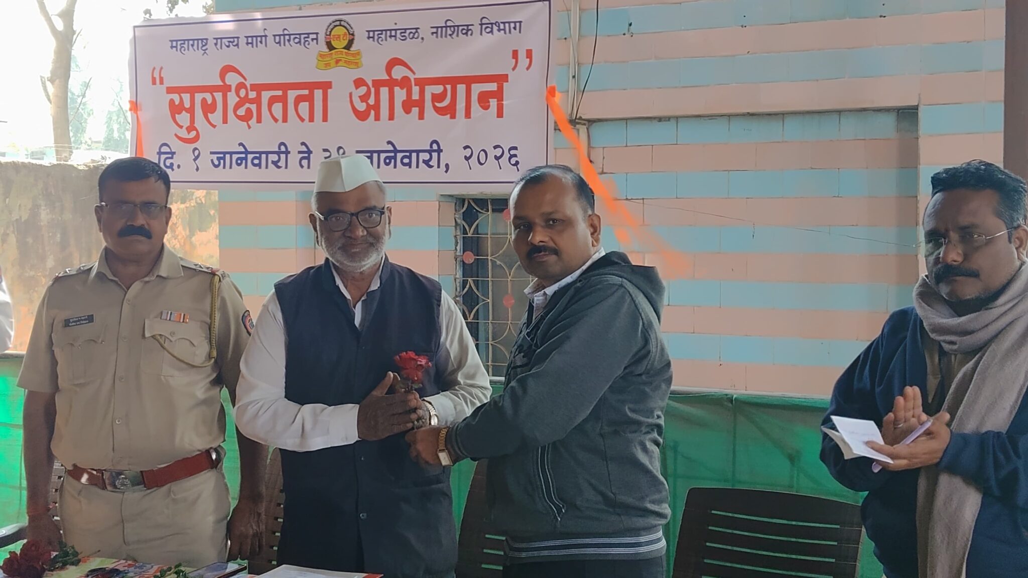 या कार्यक्रमास महामार्ग पोलीस पथकाचे उपनिरीक्षक मुरलीधर महात्मे, निलेश देशमुख, सेवानिवृत्त नायब तहसीलदार दत्ता वायचळे, महाराष्ट्र सुरक्षा दलाचे हिरे, सानप, आगार व्यवस्थापक नेरकर, आगार लेखाकार साबळे, वाहतूक निरीक्षक चोपडे, स.वा.नि. पवार यांच्यासह मान्यवर उपस्थित होते.मान्यवरांनी वाहन चालवताना घ्यावयाची काळजी,